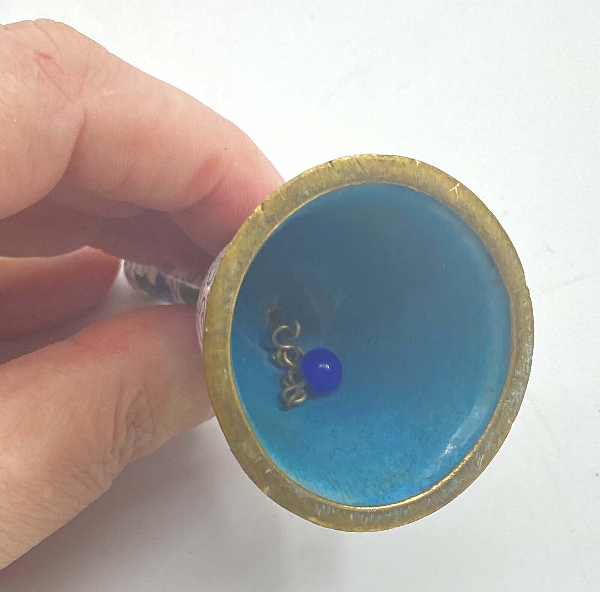 This is a very interesting and unusual small bell that is covered in Chinese cloisonné designs. The interior has turquoise enamelling. Presumably a desk ornament, possibly allowing the scholar to make a request for more ink!PLEASE NOTE THAT THERE IS FREE UK SHIPPING ON THIS ITEM. For international buyers the shipping cost will be reduced by the UK shipping cost, so don't worry if you are outside the UK, you still receive this benefit!