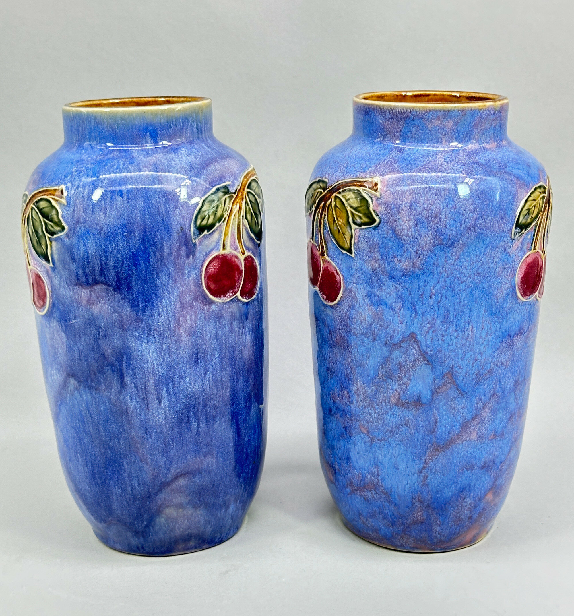 Pair of Royal Doulton Vases decorated Cherries, early C20th