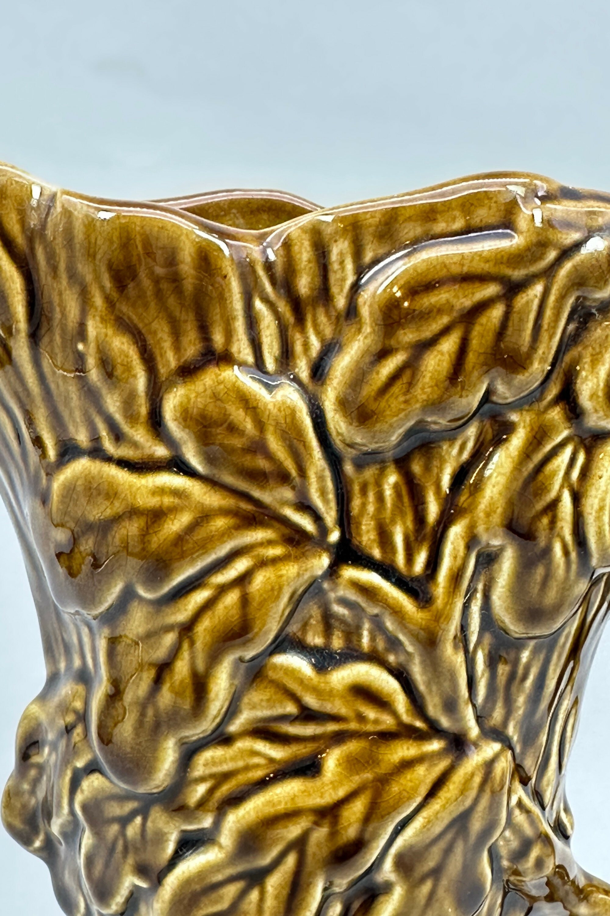 This amusing jug is from a group of pieces made by the well known English pottery manufacturers Sylvac (or more correctly SylvaC) in the 1950s called the ‘Woodland Range’. The title is really self explanatory. This jug is in the form of a naturalistically modelled tree trunk with branch handles and on a ledge is seated a small smiling rabbit. The base has impressed marks for Sylvac and the model number ‘4242’.‘SylvaC’ (the name was written with a capital ‘C’ after registration of the trademark in 1938) was a trade name of Shaw and Copestake, a company formed by Mr. William Shaw and a Mr. Copestake around 1900. Mr. Copestake sold his shares to a Mr. Richard Hull after about six months of business and this partnership continued until Mr. Hull’s death in 1935. He was succeeded by his son, Mr. Richard Hull junior. In the following year, the business became a limited company. Various mergers and acquisitions followed and in the 1950s new premises were built and production expanded considerably continuing until the early 1980s when changing markets and increased competition forced the company into liquidation.