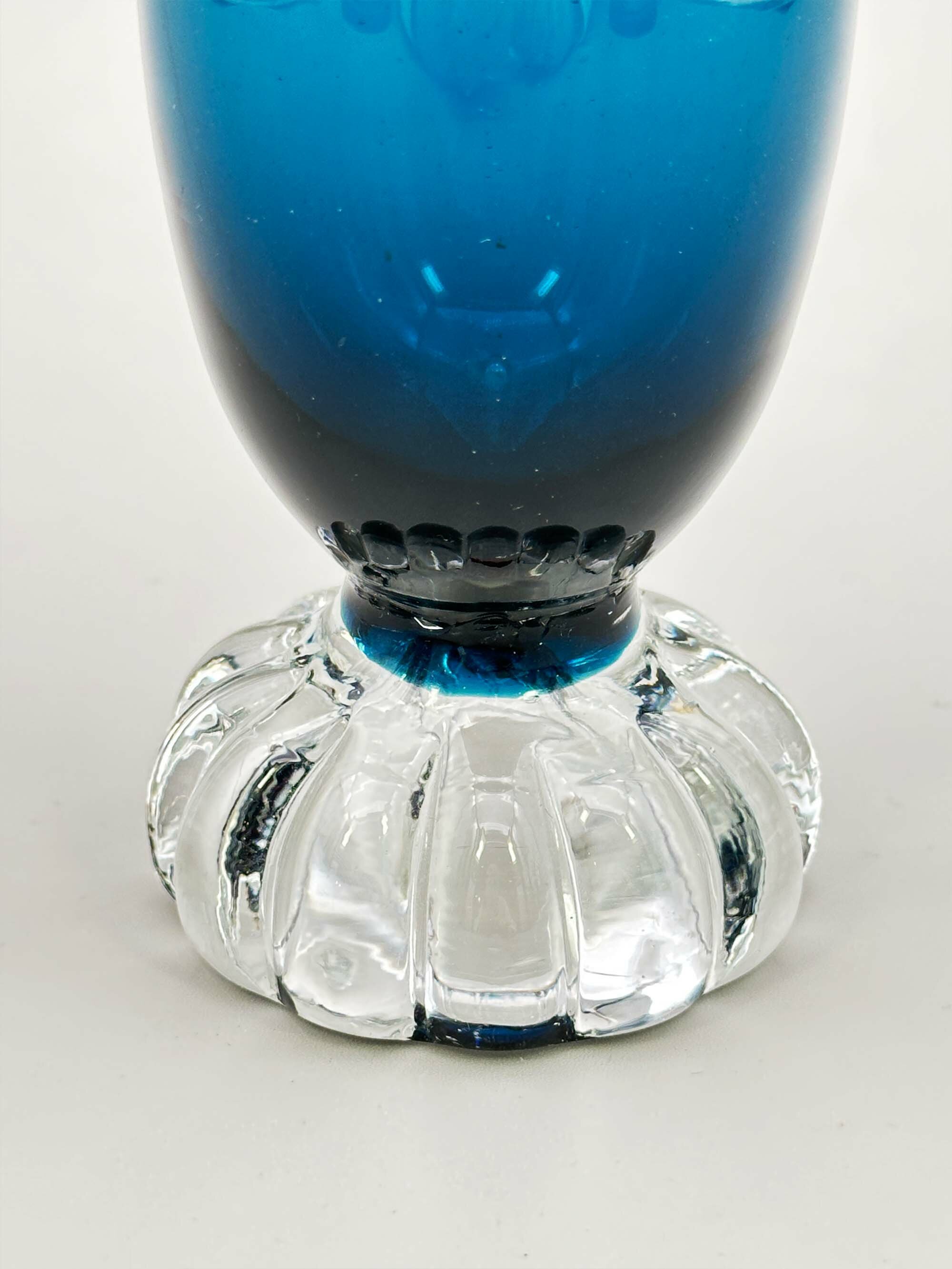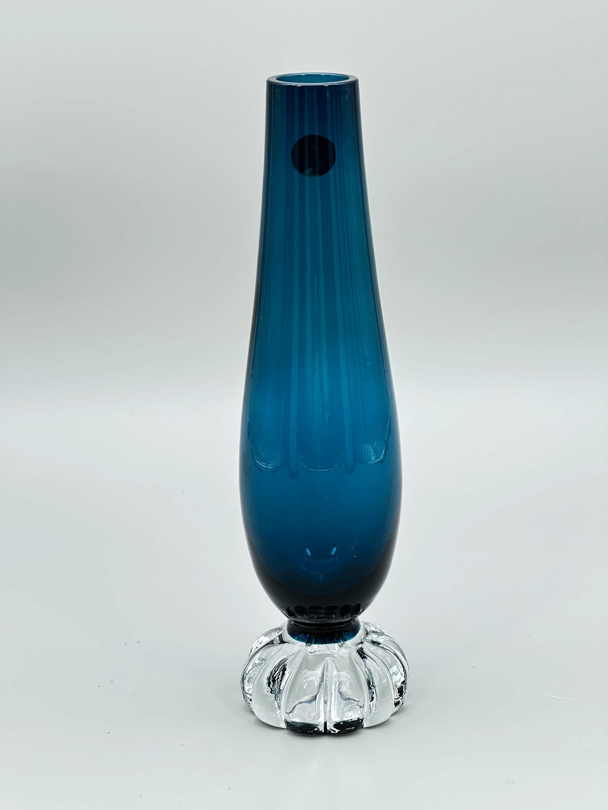 Blue art glass bud vase, Hjorts Glasbruk, Sweden, second half C20th