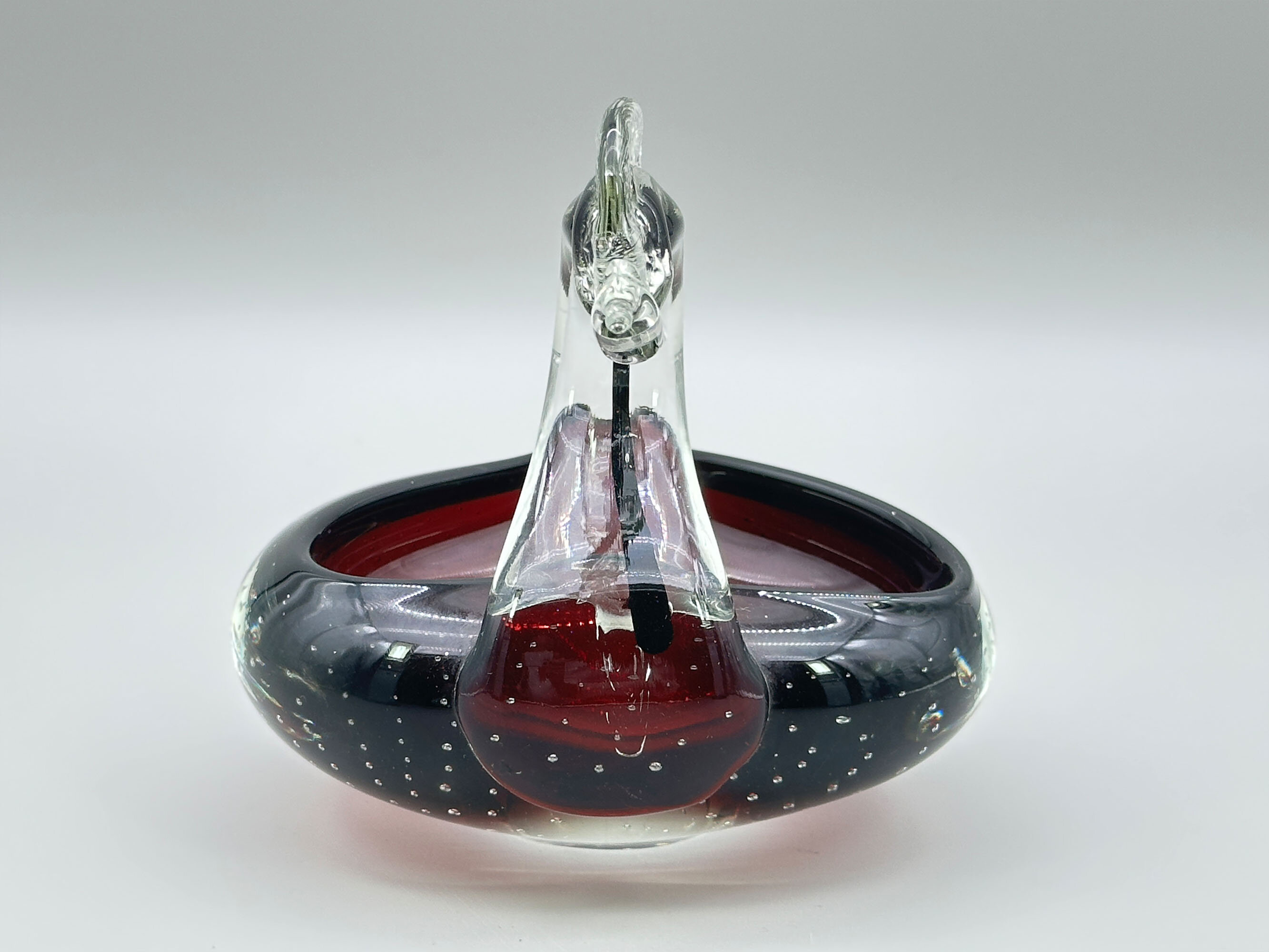 Murano bullicante glass swan dish, second half C20th