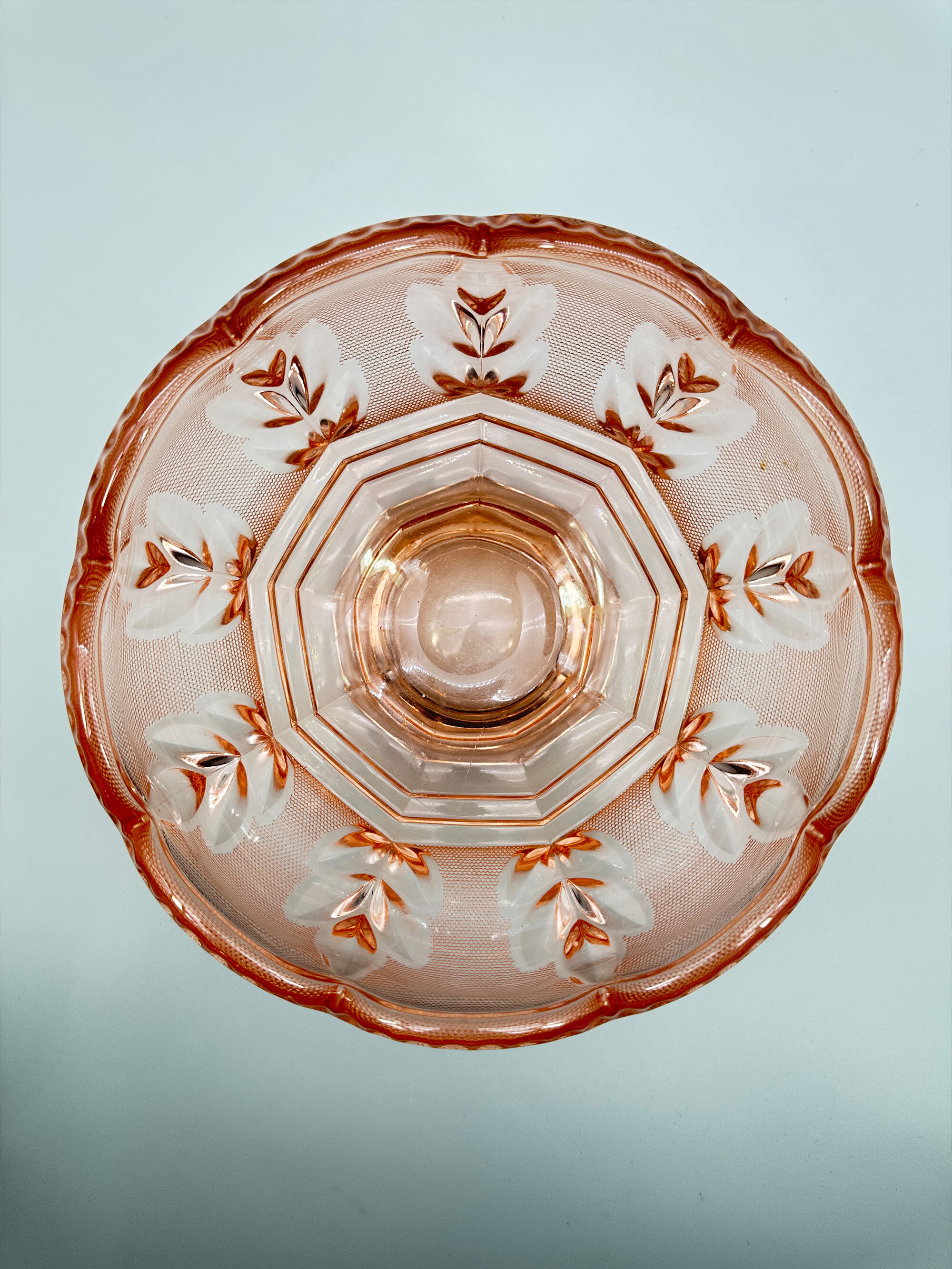 Peach colour pressed glass Bowl, Walther & Söhne, Wilhelm pattern, 1930s