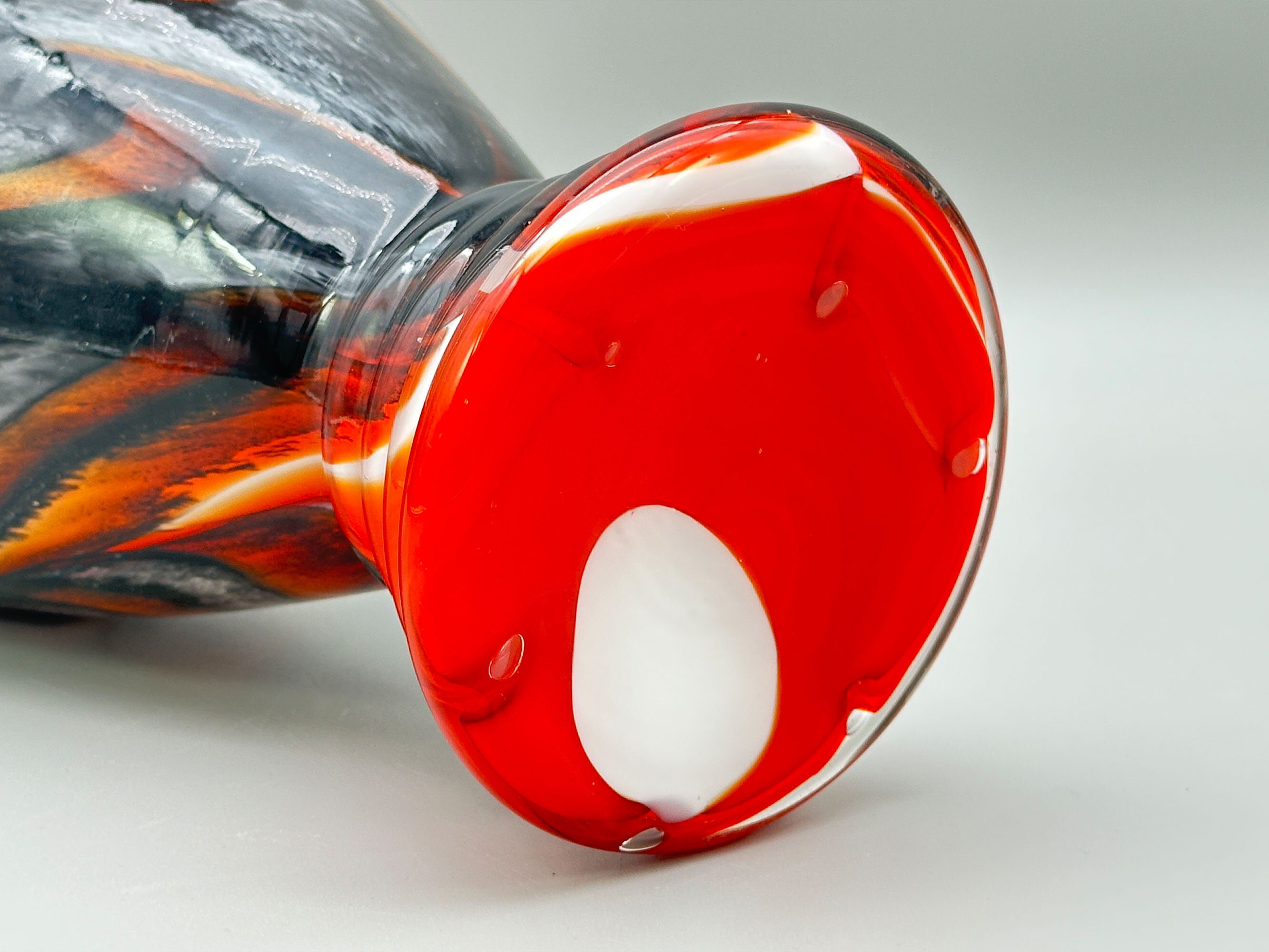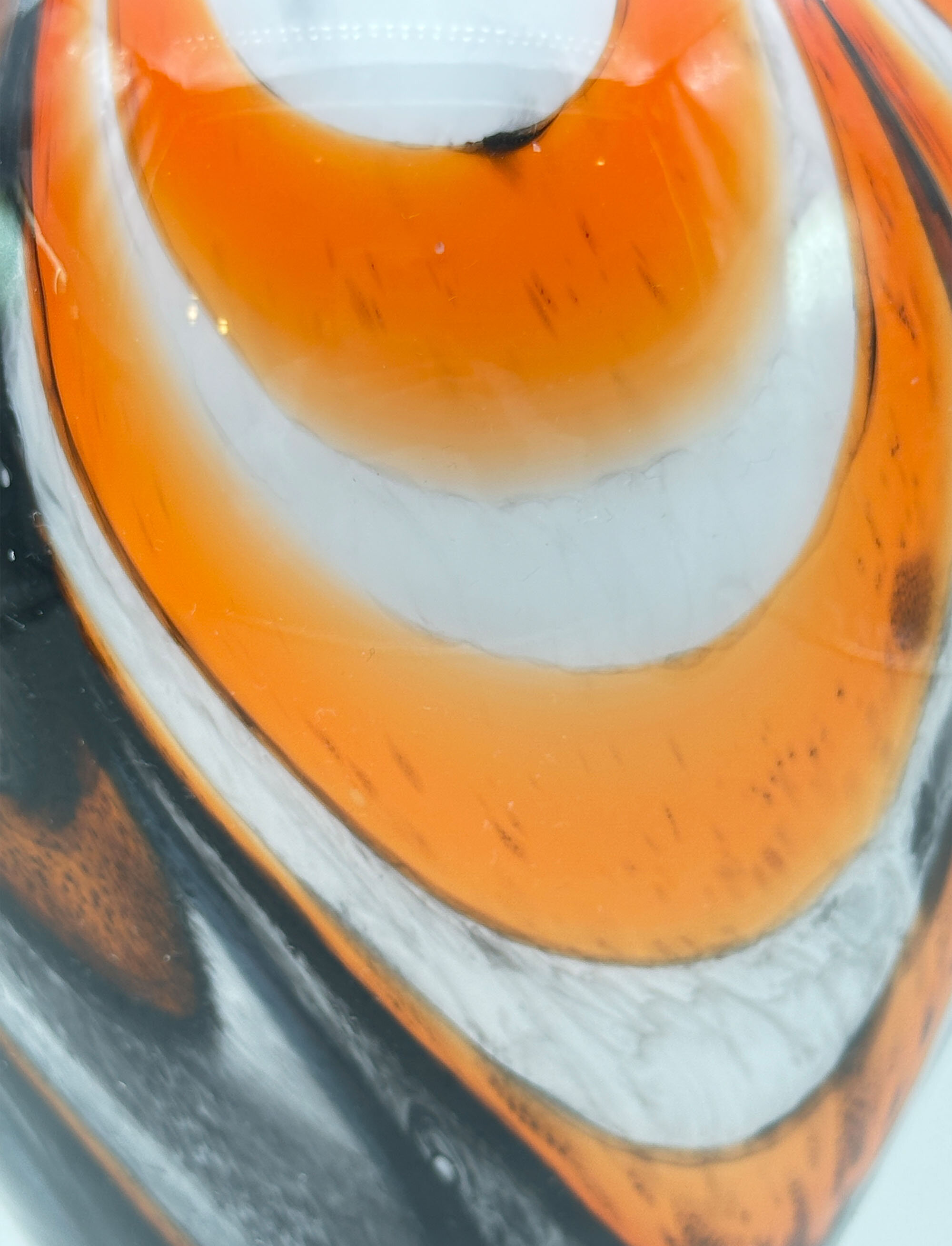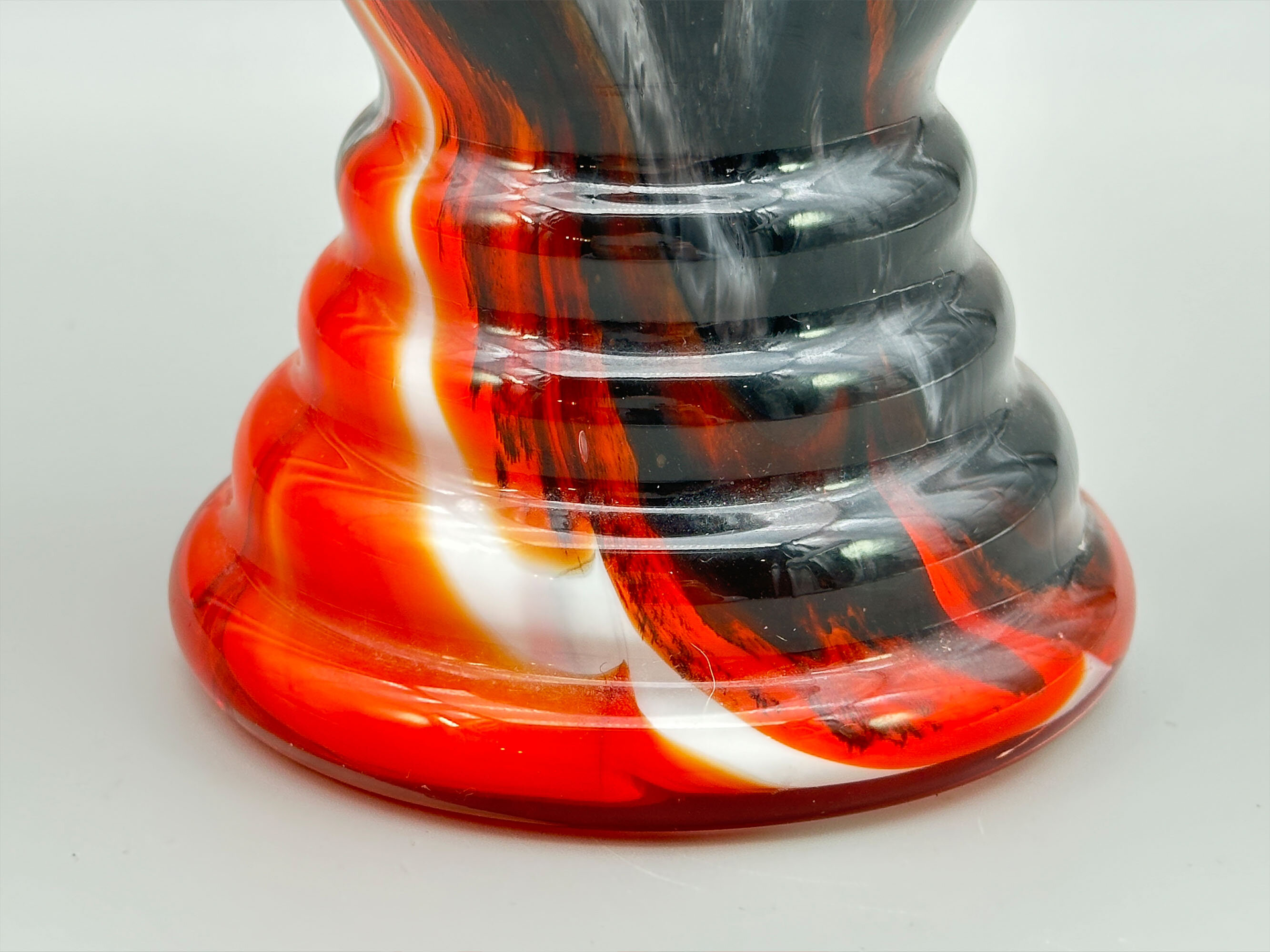 Tall glass vase with orange, grey and black swirls, probably by Carlo Moretti, Italian 1970s