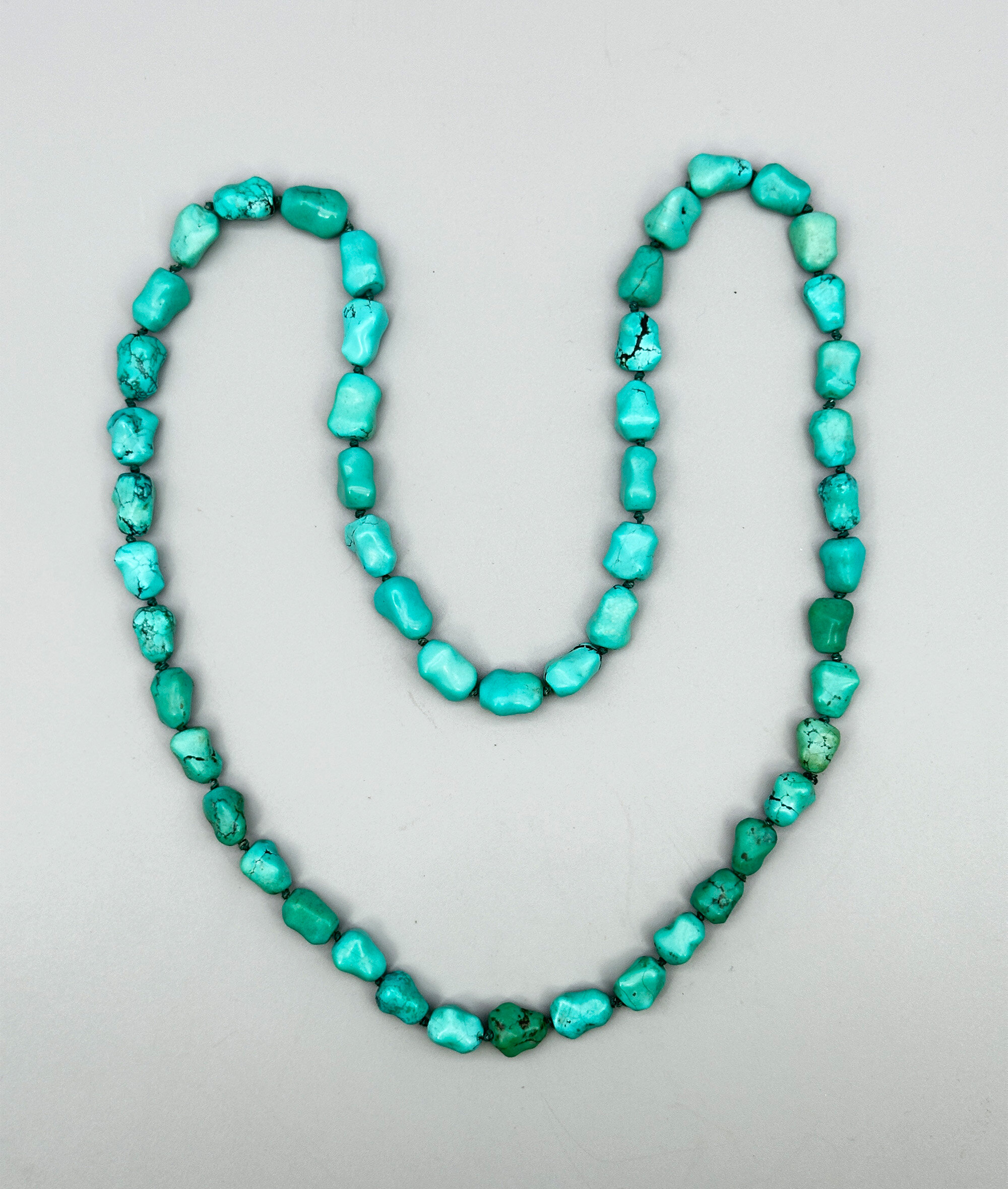 Long graduated strand of Chinese Hubei turquoise beads c1930