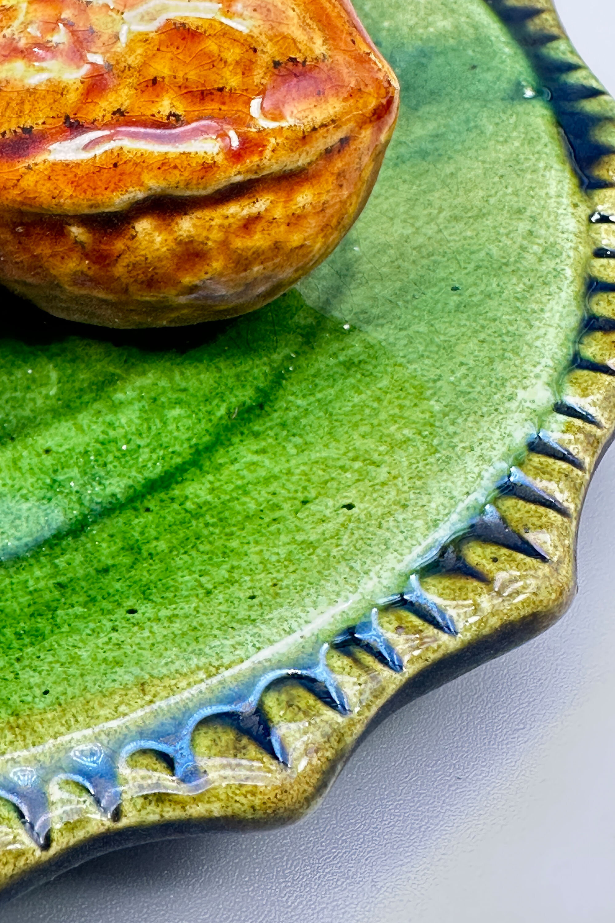 Majolica palissy style Walnut Dish, Roque Gaeiras, Portugal, second half C20th