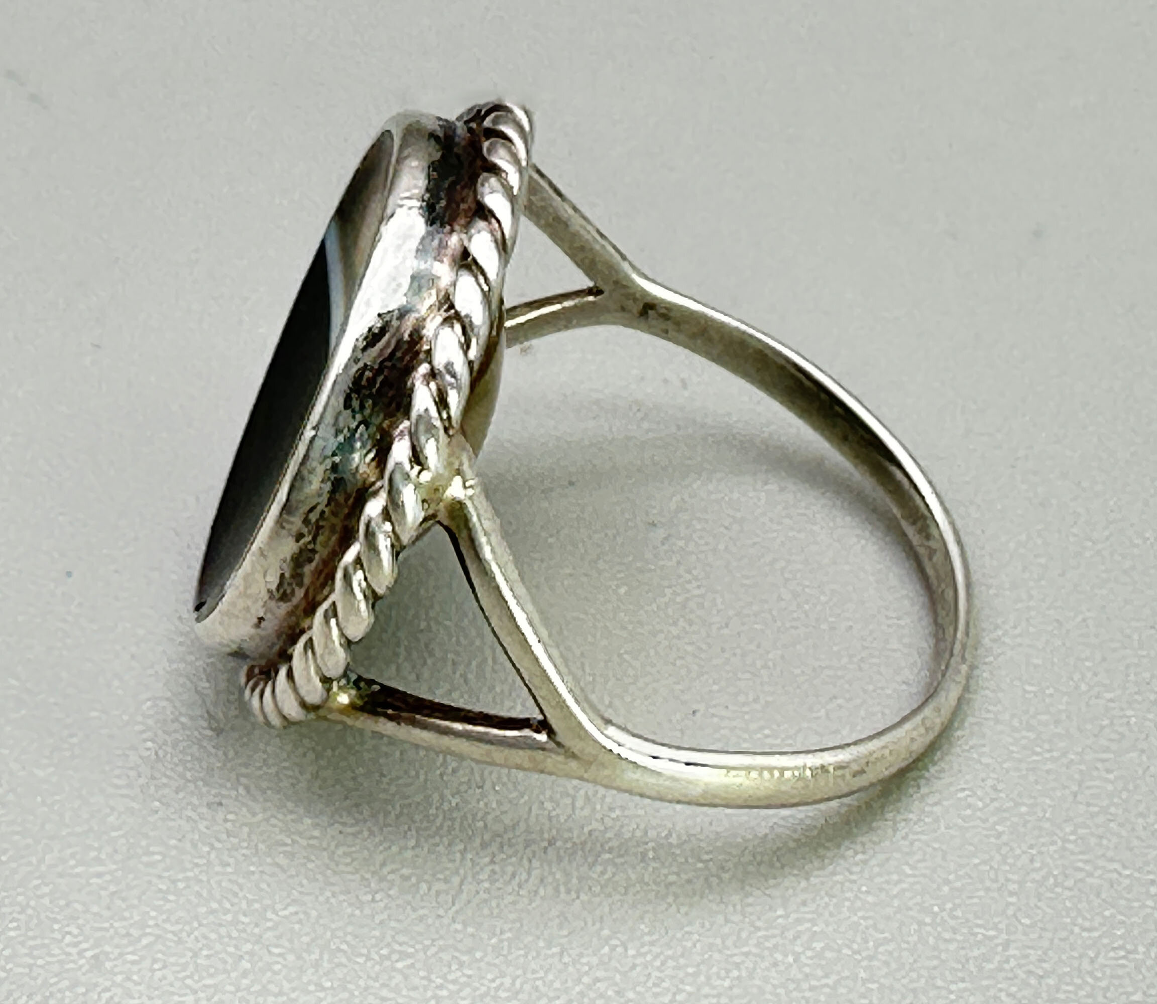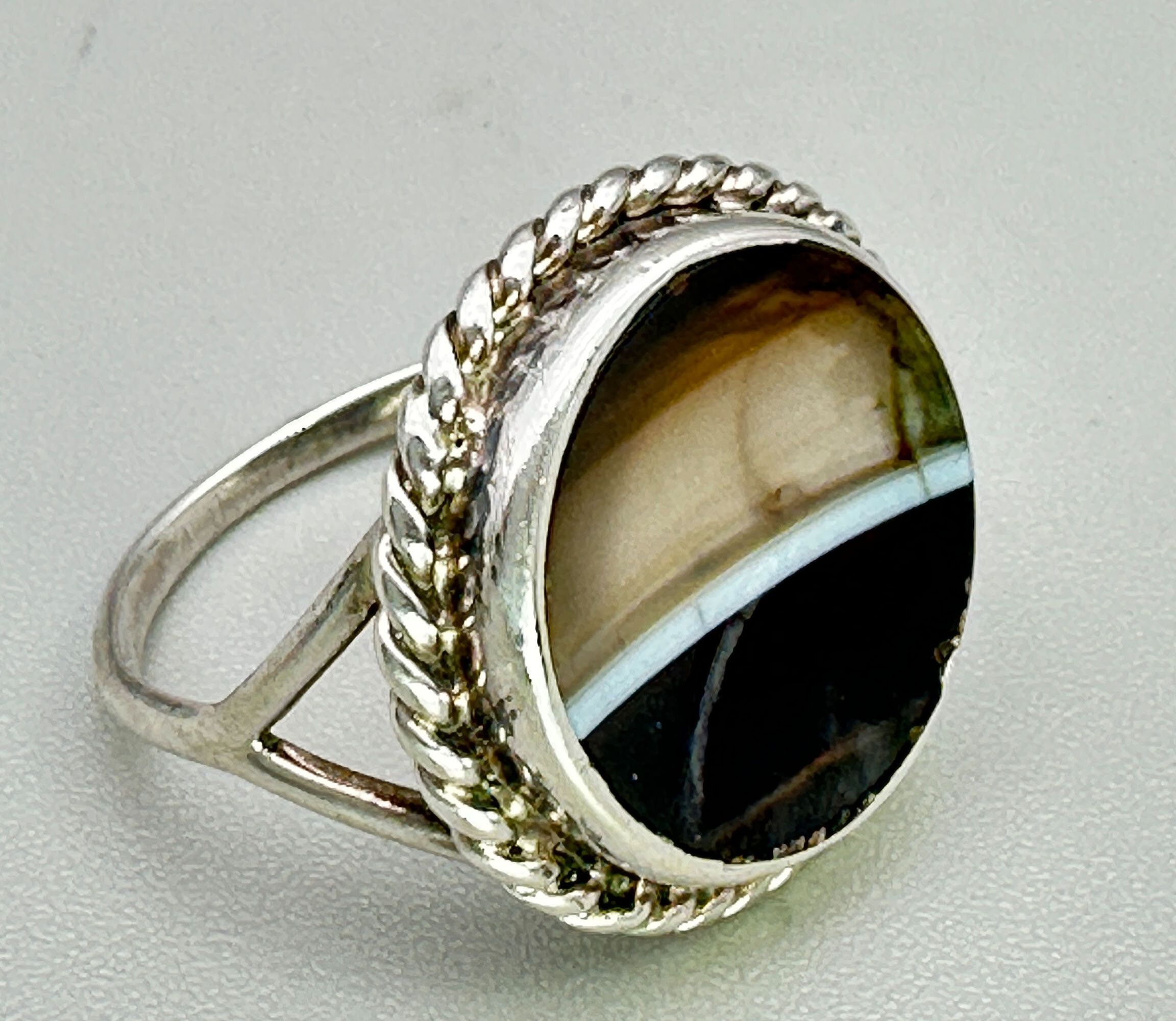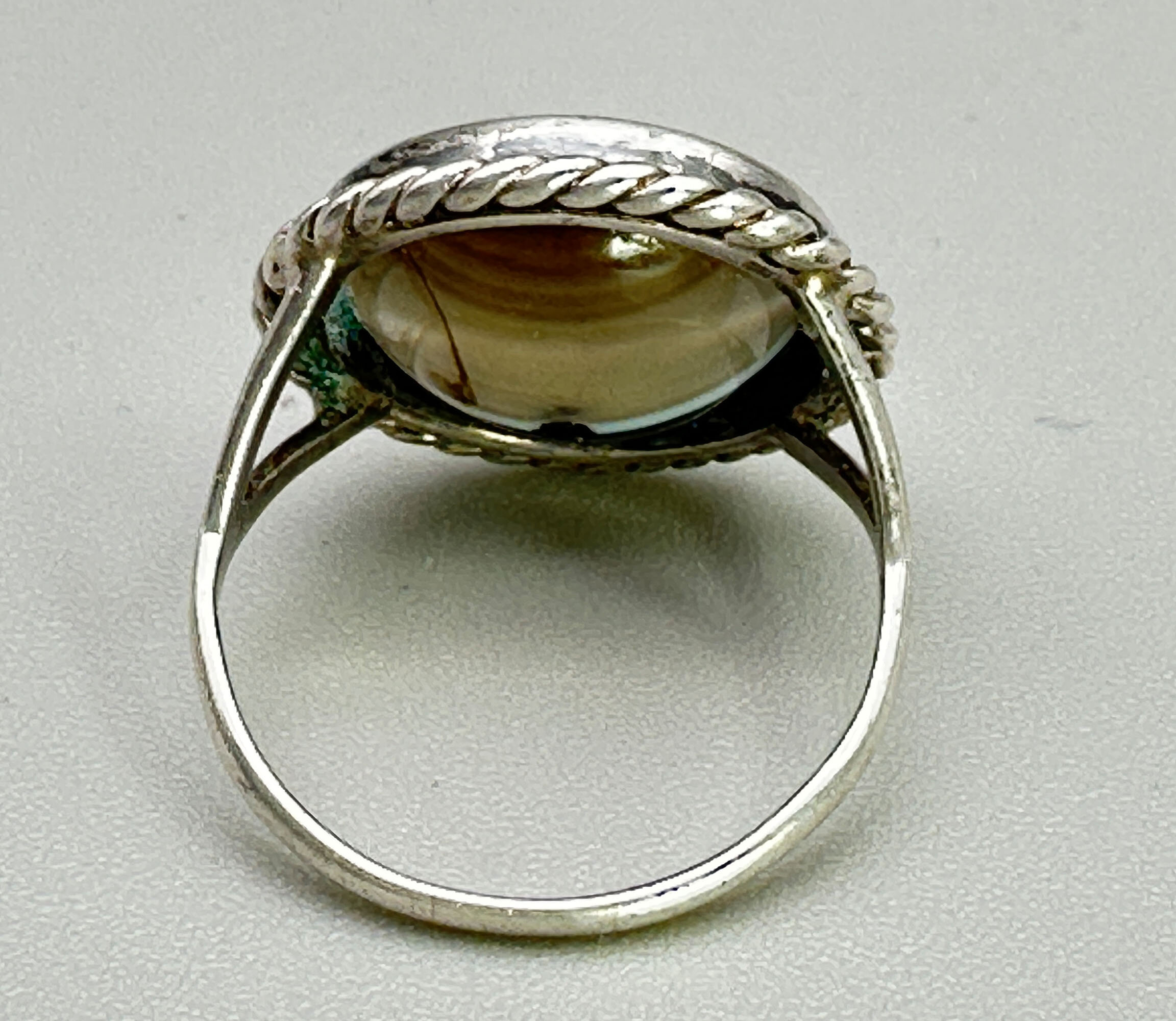 Art Deco concave cut agate ring c1930