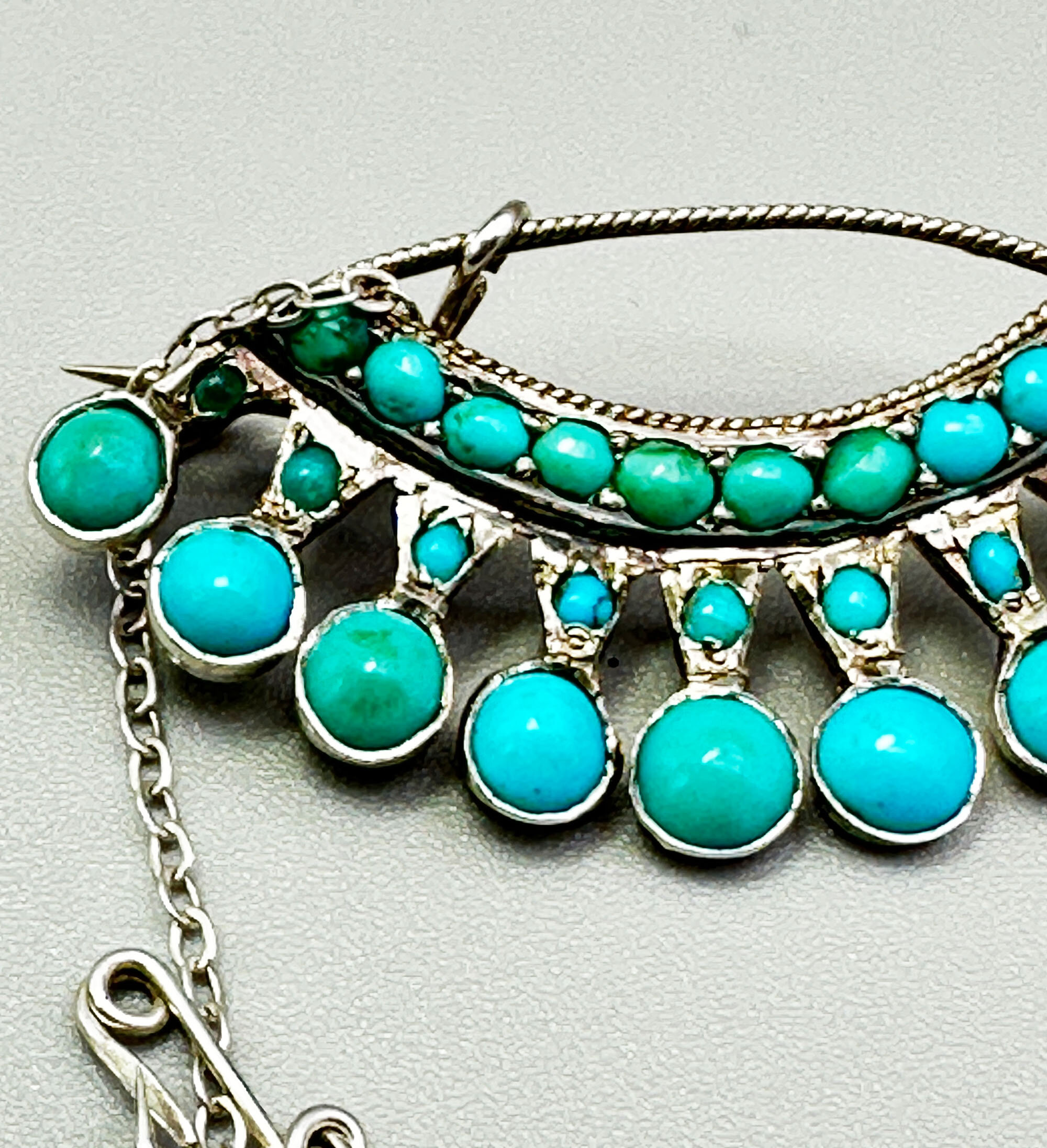 Edwardian silver and turquoise brooch c1910