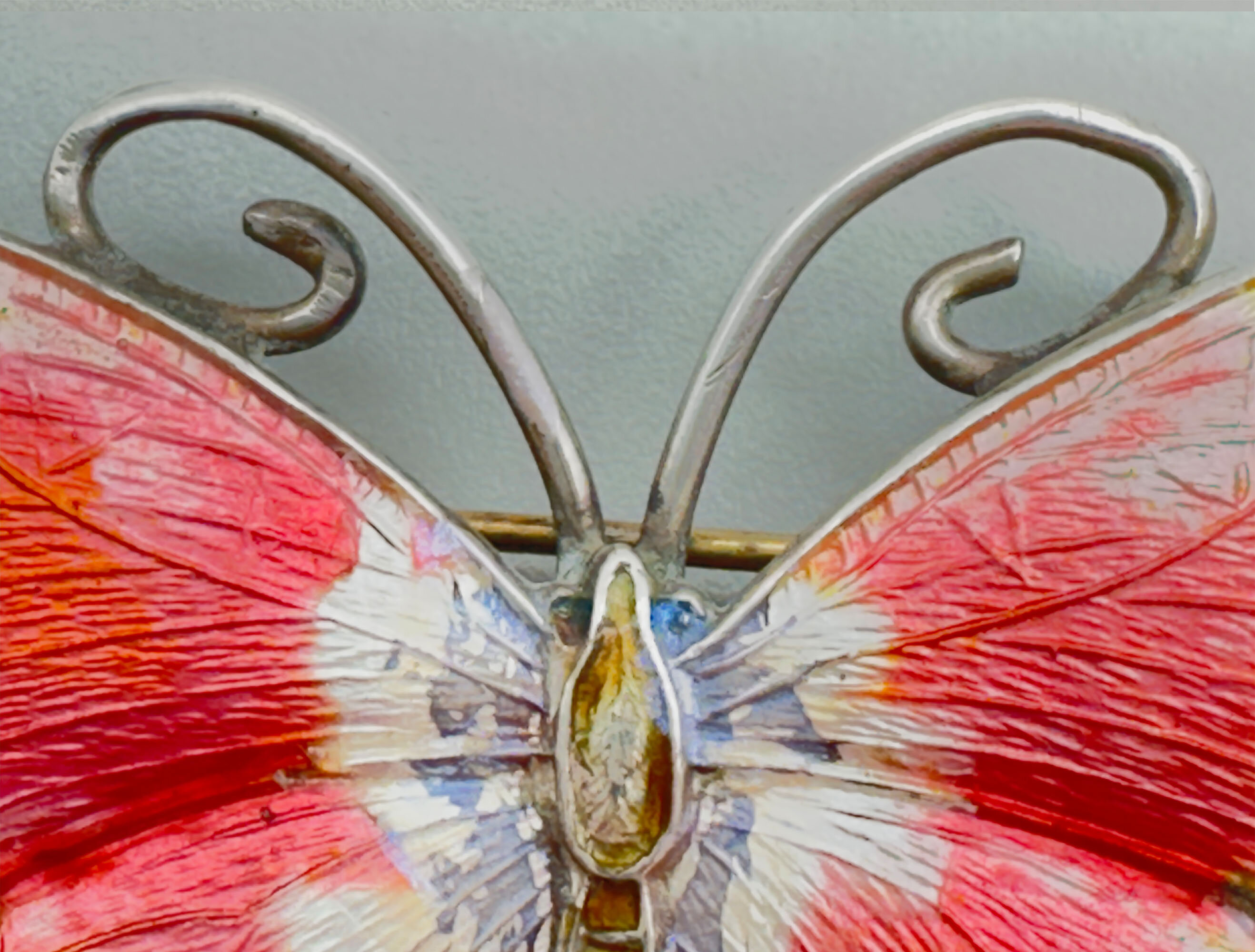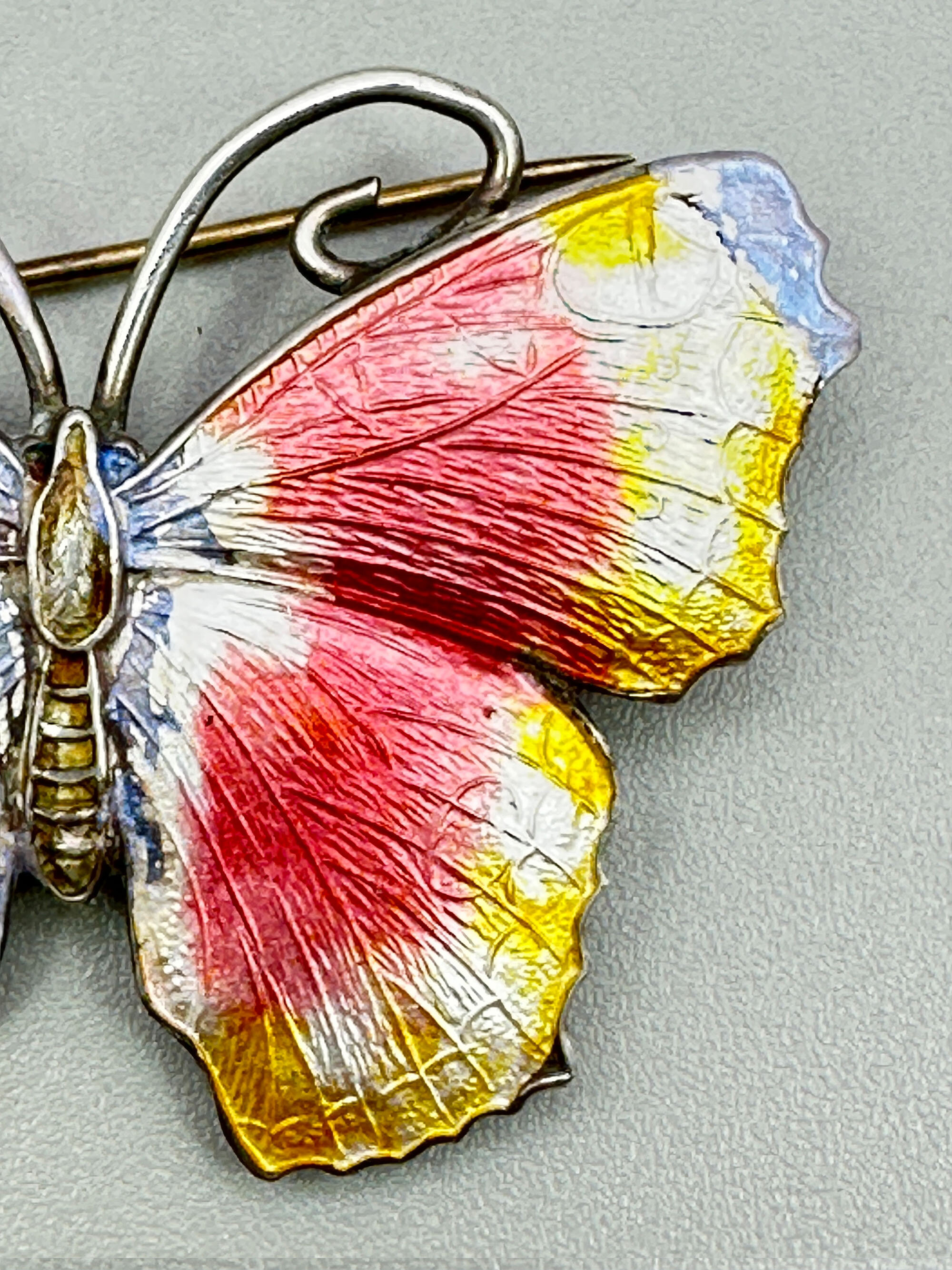 Pink and yellow enamel butterfly brooch, Norway c1950