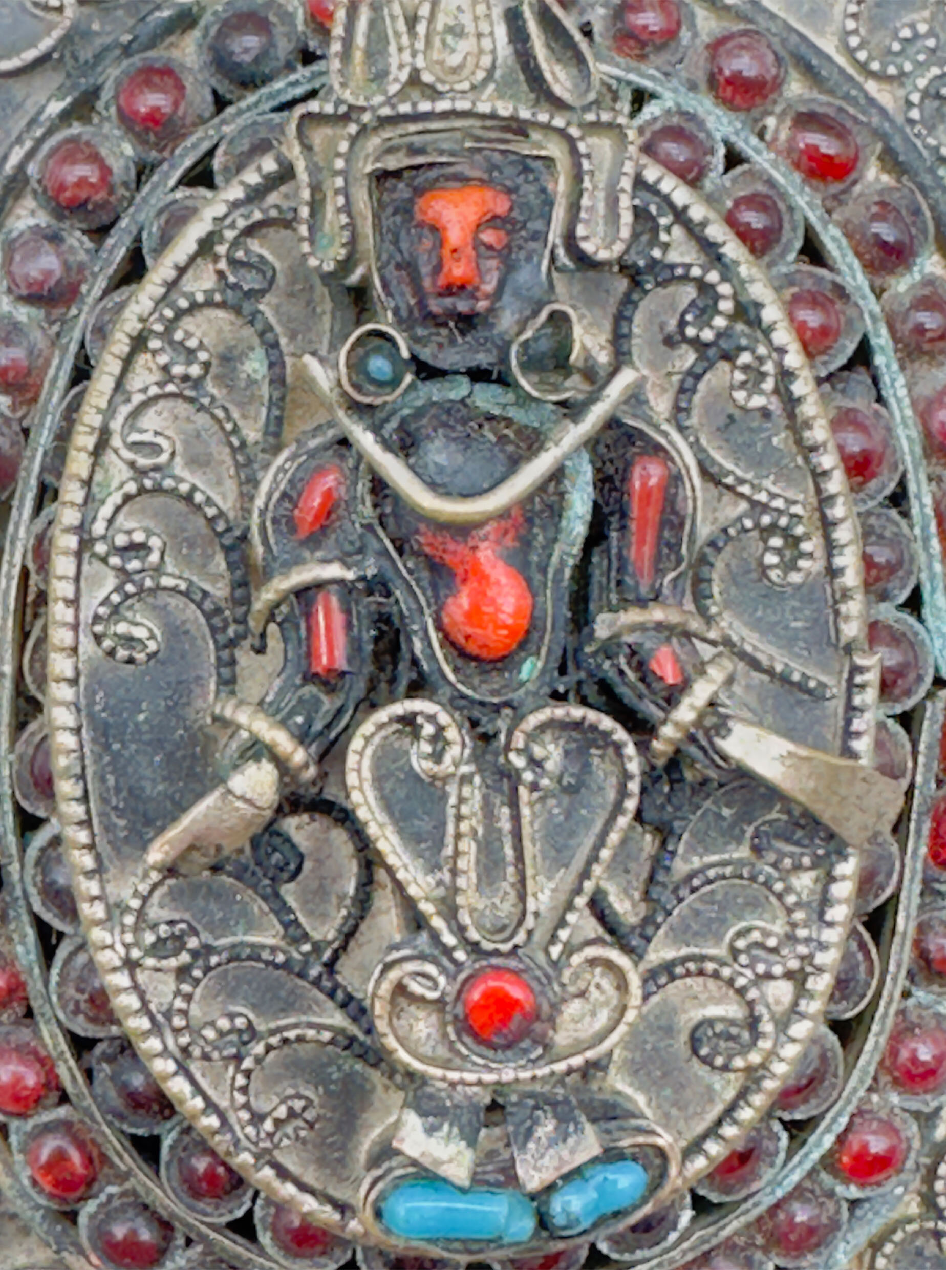 Tibetan amulet necklace featuring Buddhist deity c1900