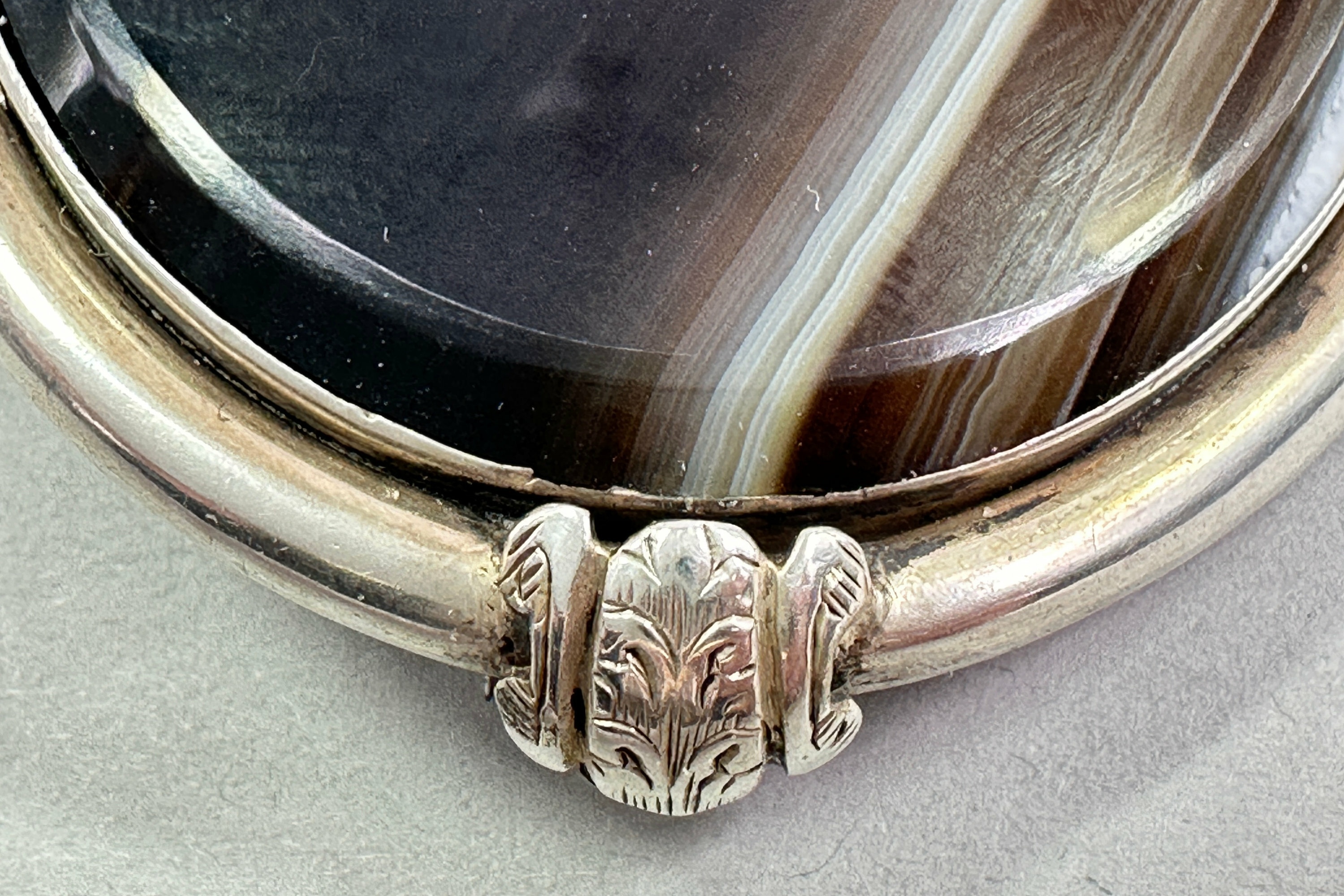 Victorian Silver Mounted Banded Agate Brooch, late C19th