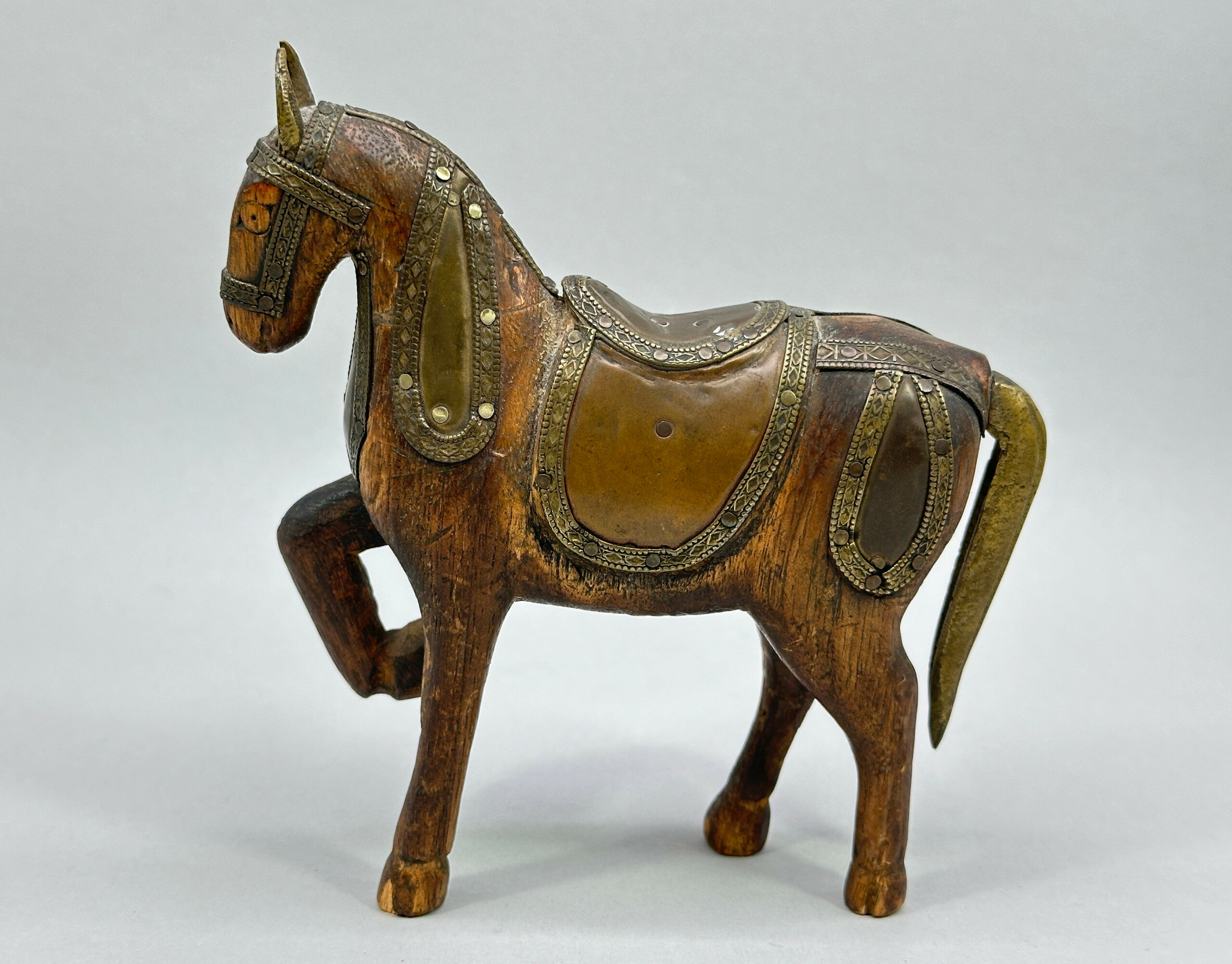 Indian wooden toy model of a Horse with metal fitments, early C20th