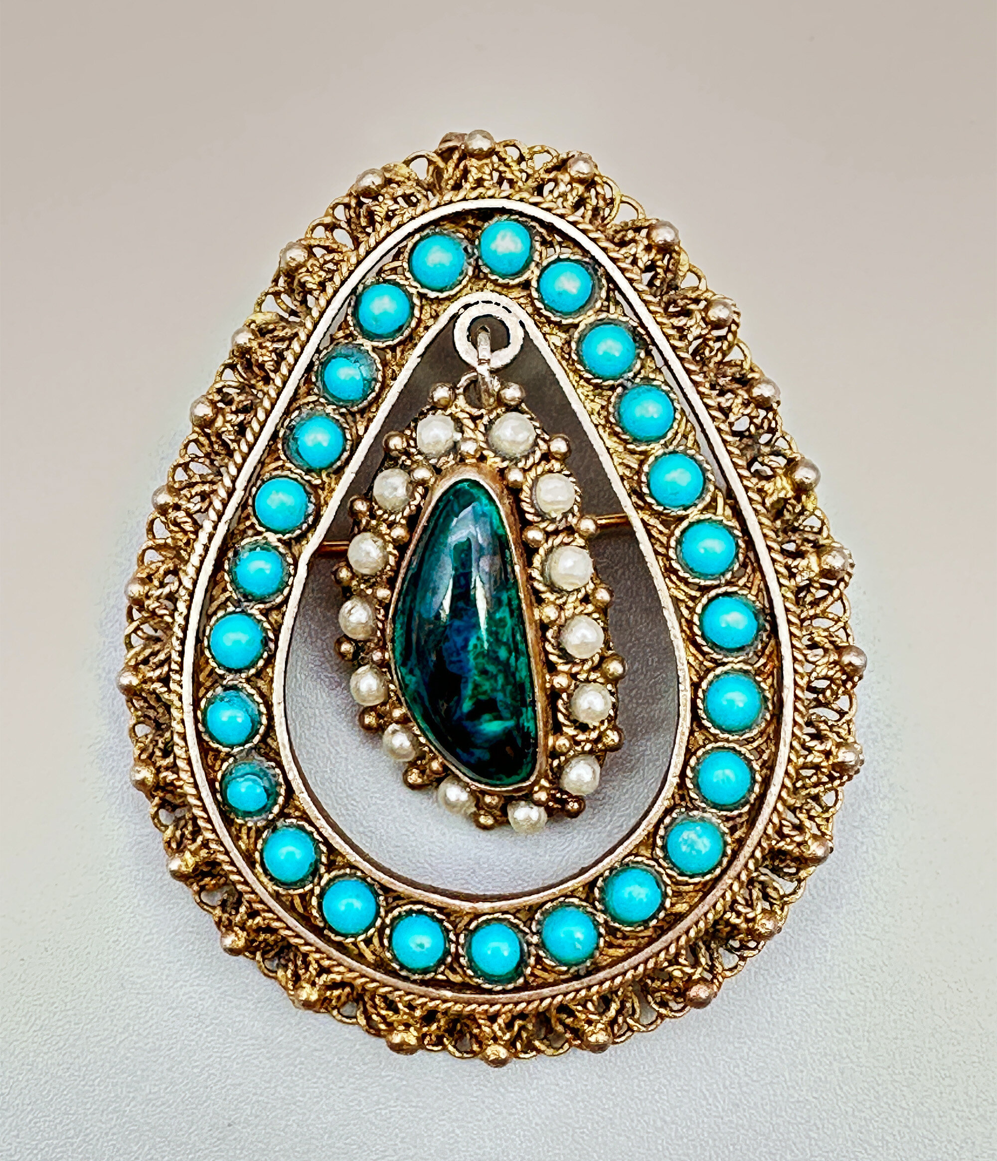 Jerusalem filigree silver gilt brooch/pendant c1950