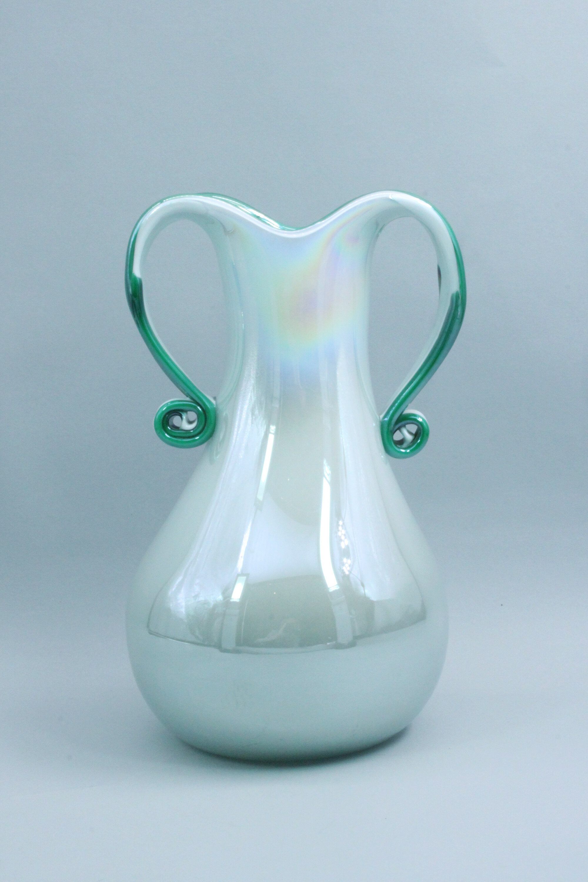 Iridescent art glass Vase with loop handles, possibly continental 1950s
