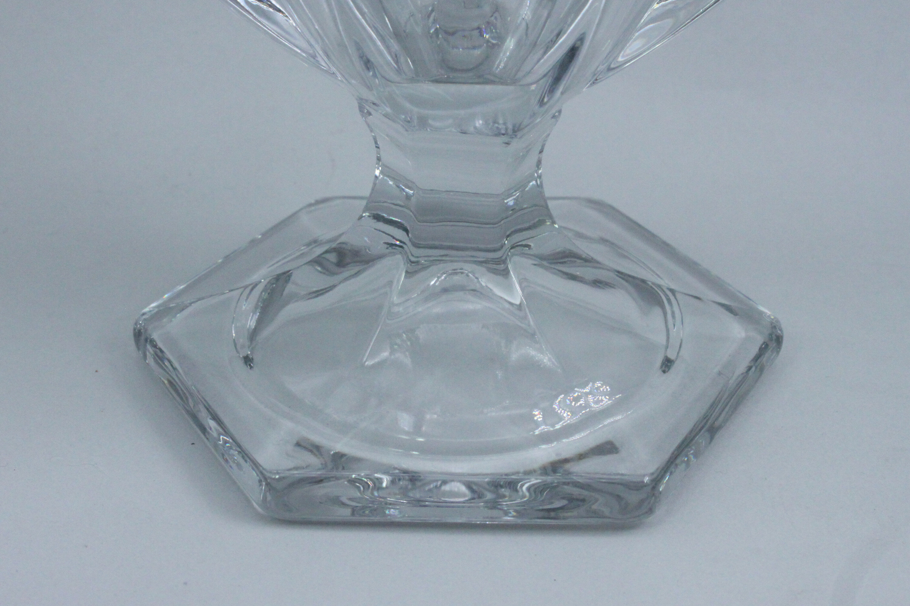 A Pair of Art Deco Pressed Glass Trophy Form Vases, Davidson, 1930s