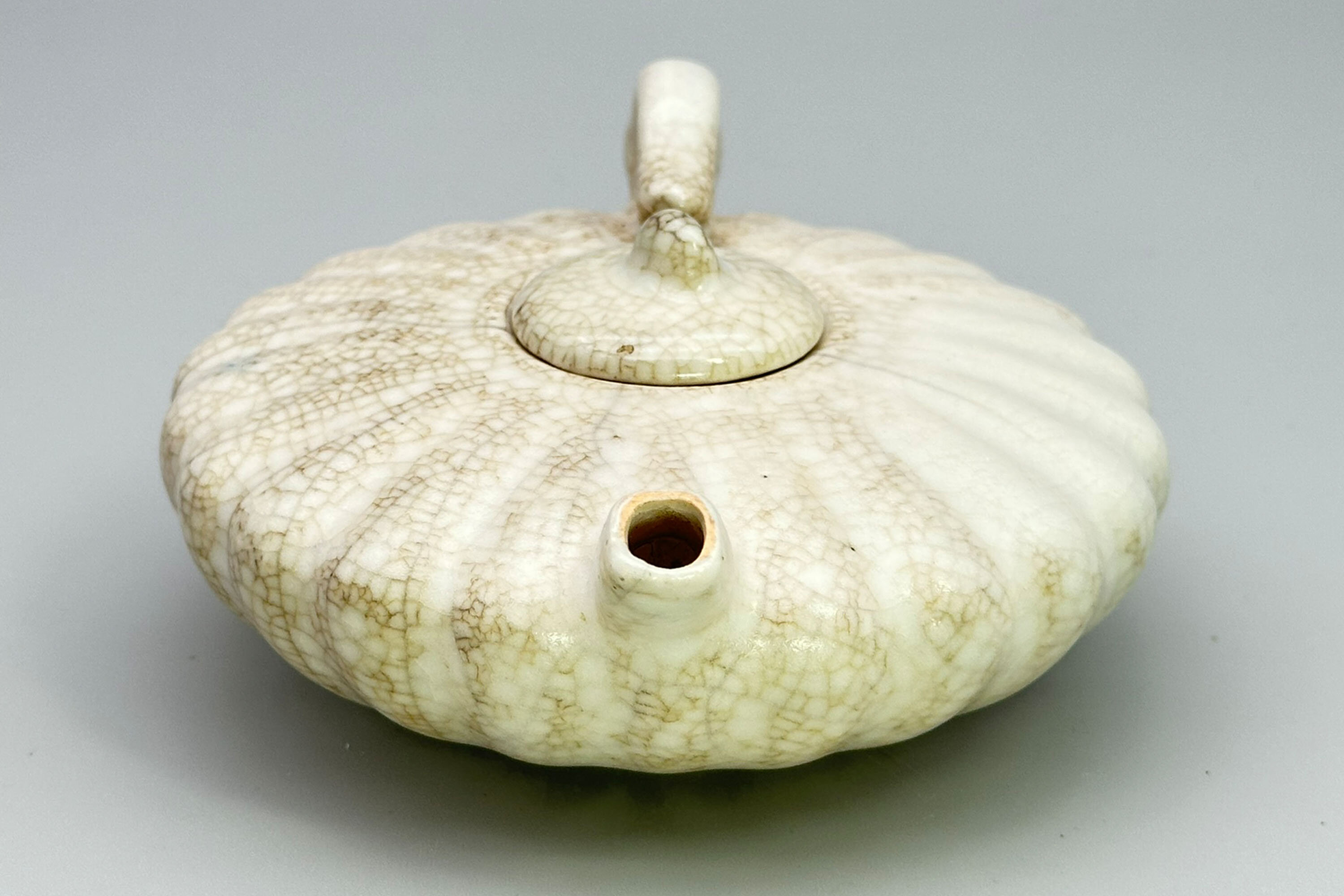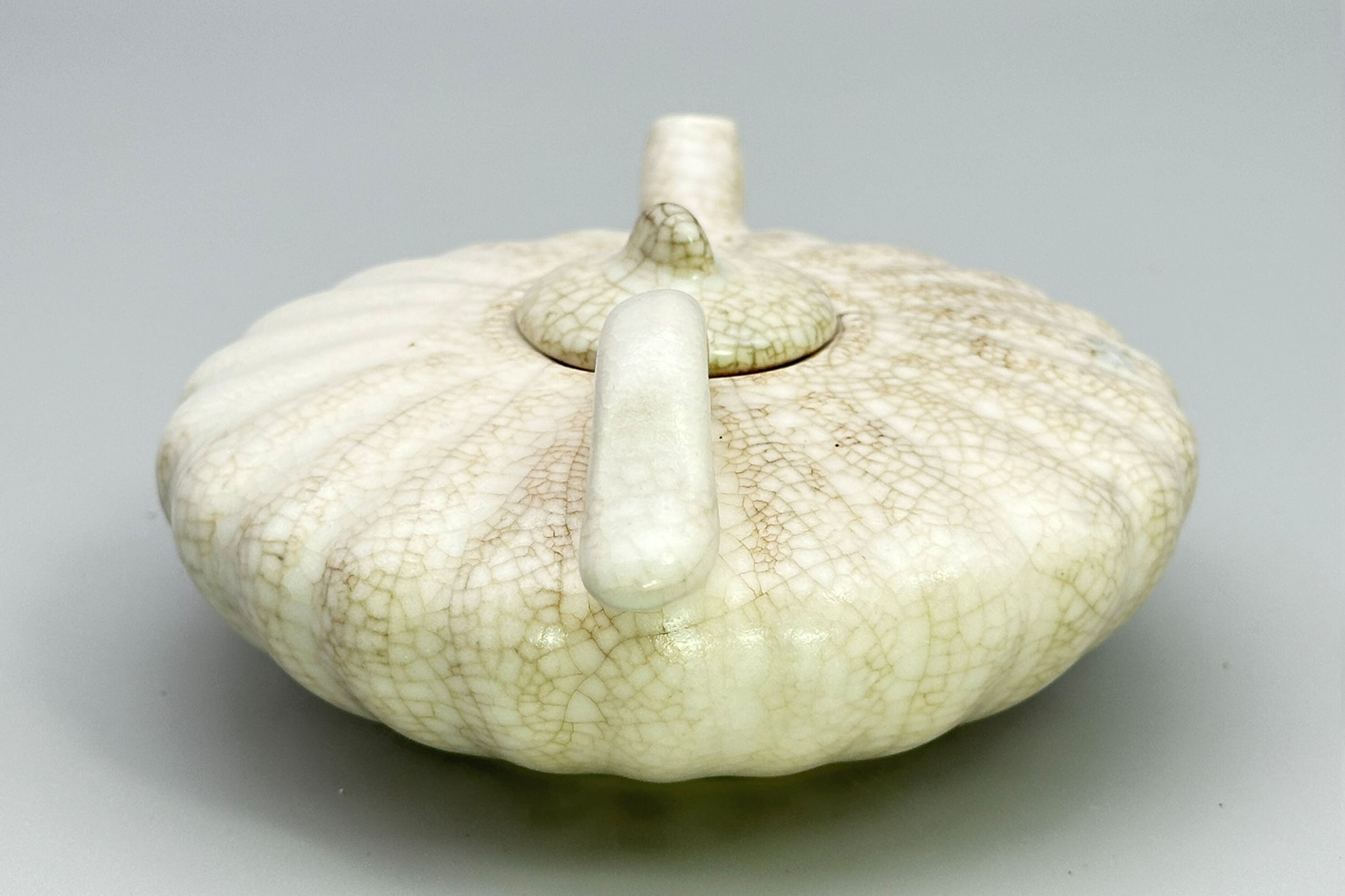 Chinese pumpkin shape Teapot with cream craquelure glaze circa 1900