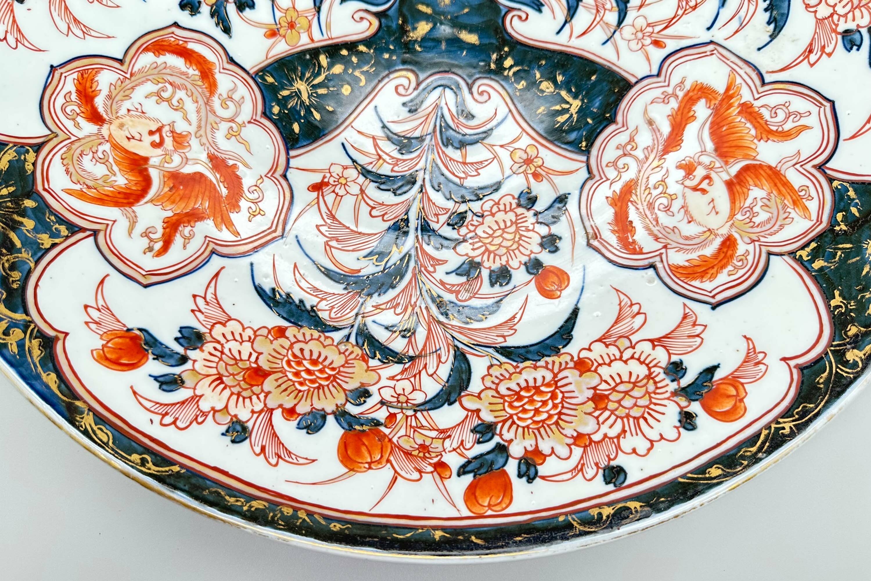 The so called ‘Imari’ porcelains were staple items amongst the ceramics created by the Japanese pottery workshops for export to the West from the mid seventeenth century onwards. Their colourings, most commonly underglaze blue, red and gold, and style of decoration were much imitated, first in China and then in Europe. While the charger featured in this auction was made in the nineteenth century it resembles its earlier predecessors closely and is a more than worthy successor to them.………………………………………………………………………………….....................................................................................………