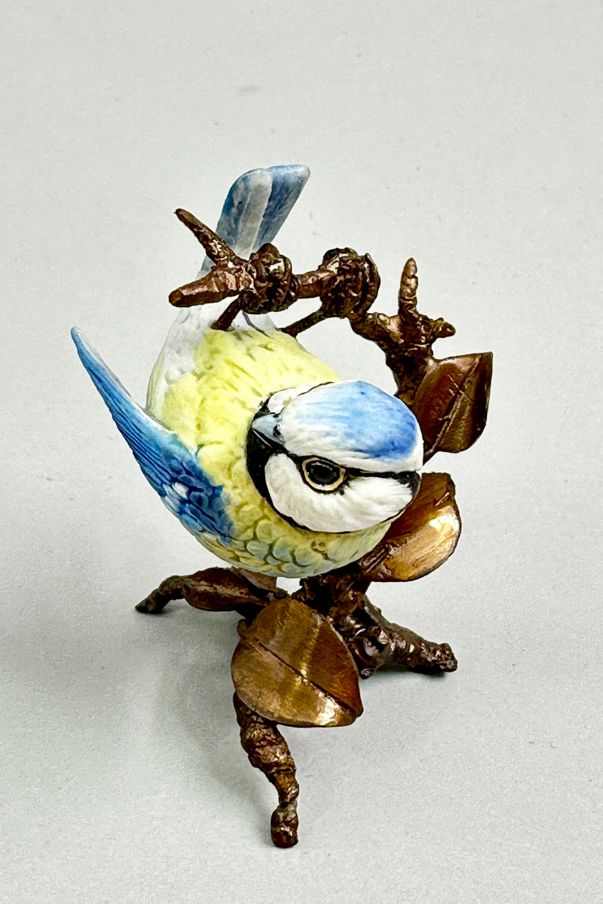 Ceramic and Bronze figure of a Blue Tit, Albany Worcester, late C20th
