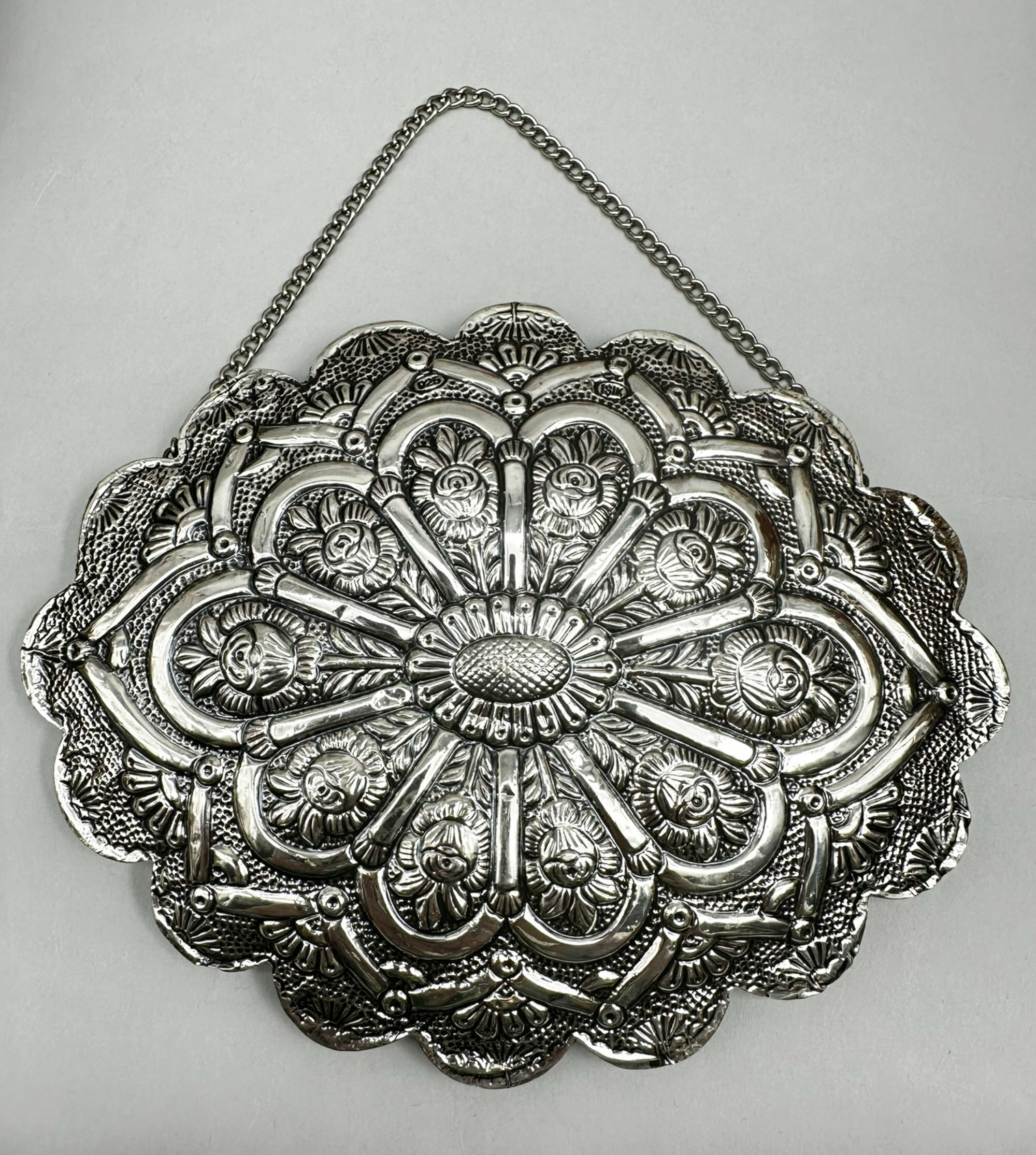 Very fine Indian silver repousse plaque Necklace, c1970