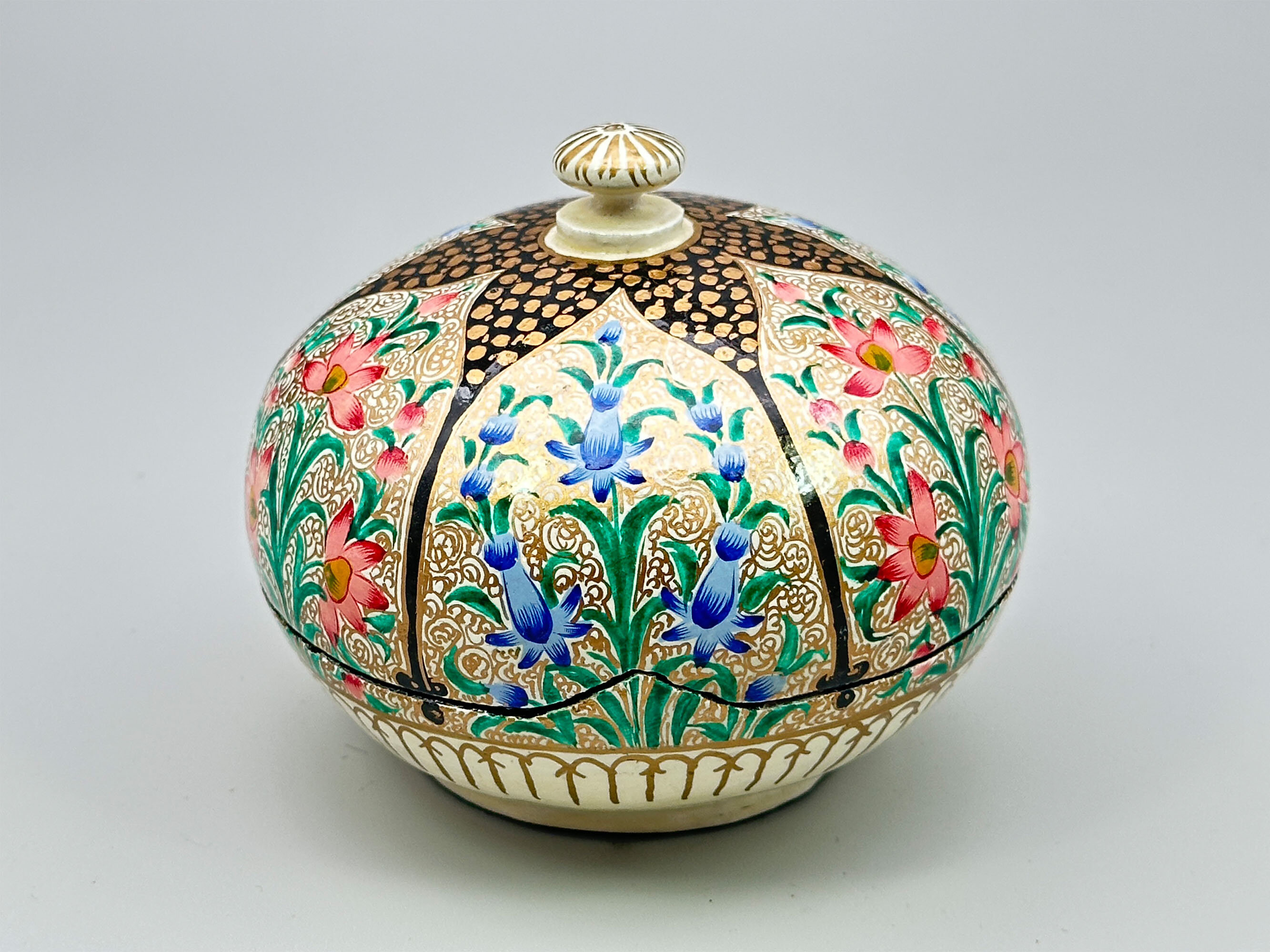 Papier-mâché trinket box and cover, Kashmir, India, C20th