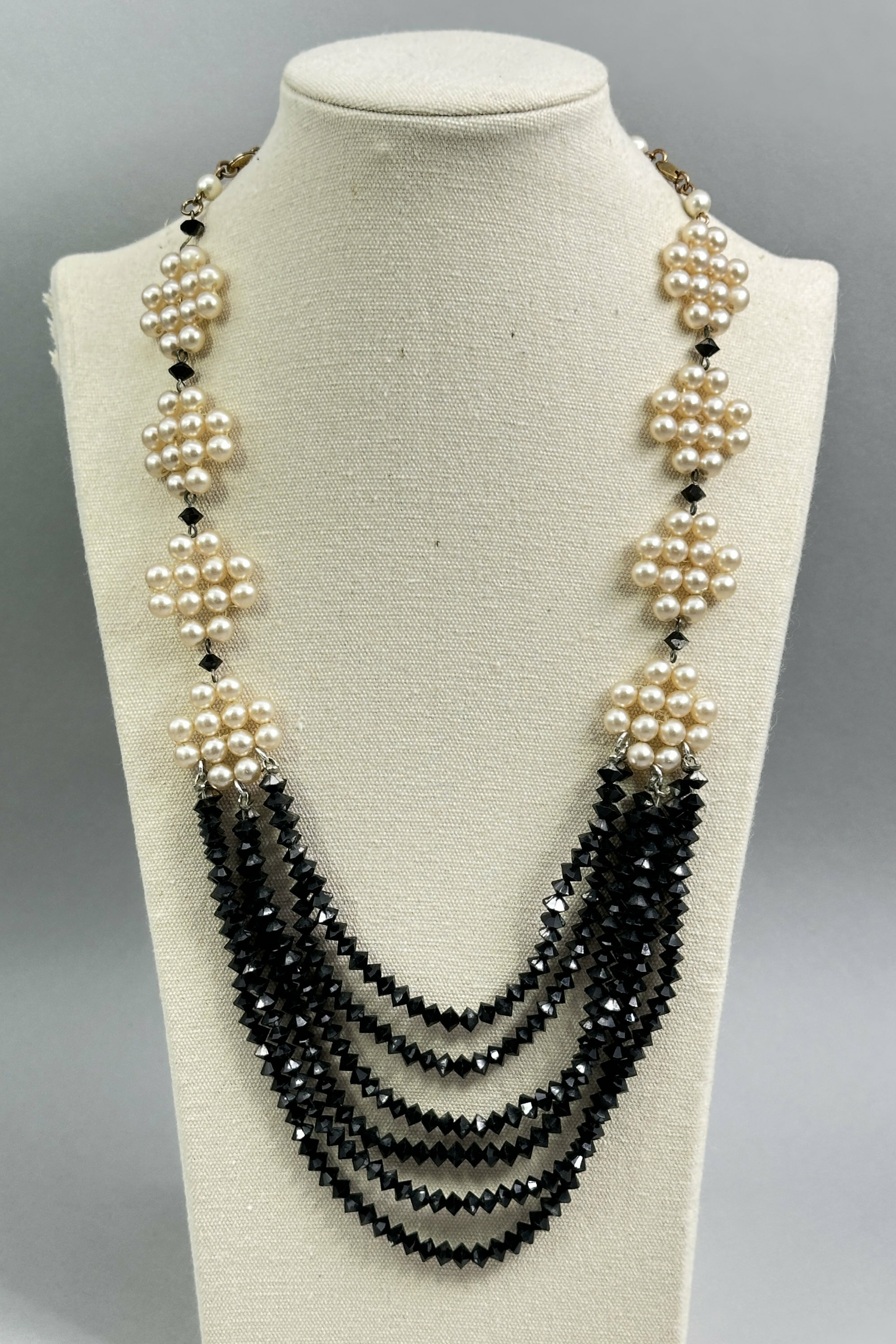 Art Deco French jet and pearl necklace c1940