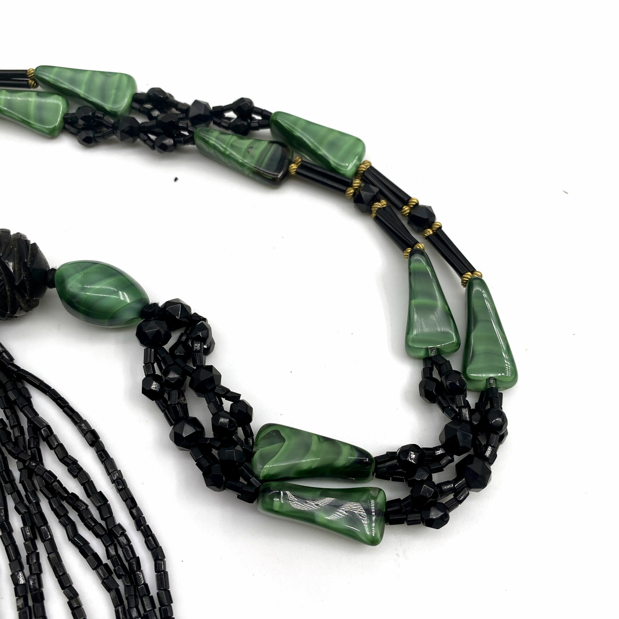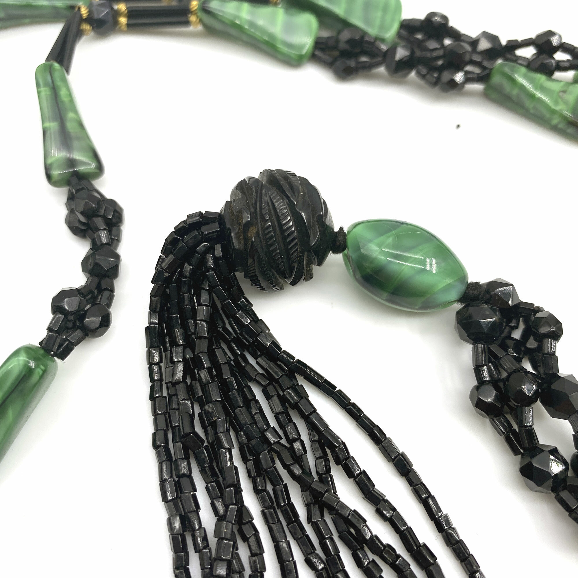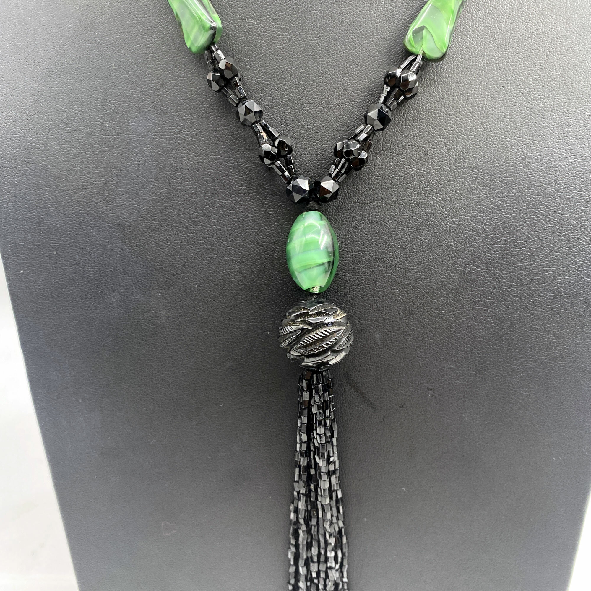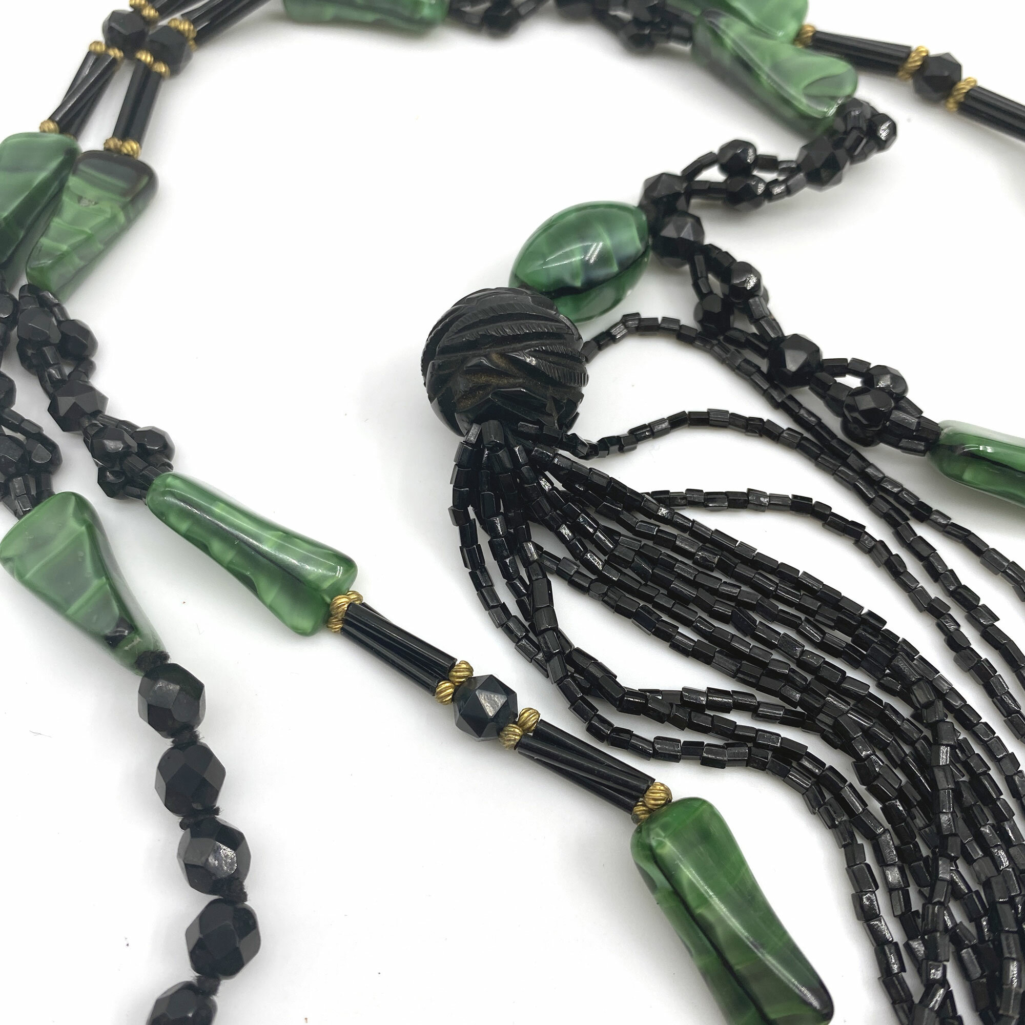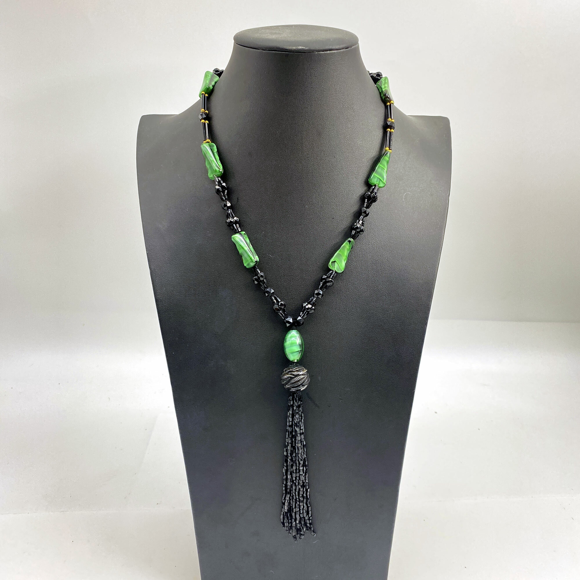 Beautiful sautoir necklace with Whitby jet pendant 1920s