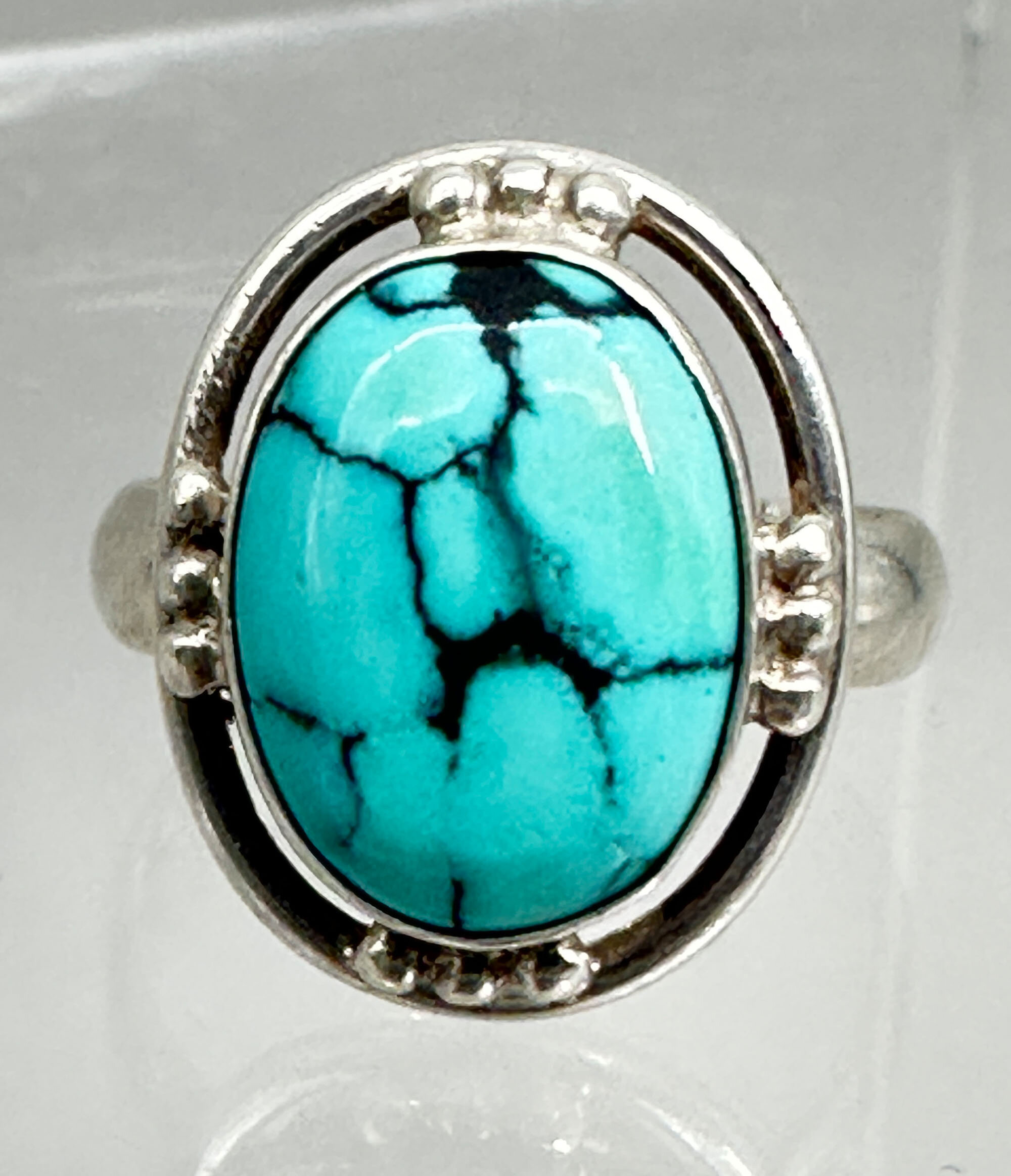 Zuni Cuff Bracelet set with Kingman Turquoise, marked, New Mexico 1...
