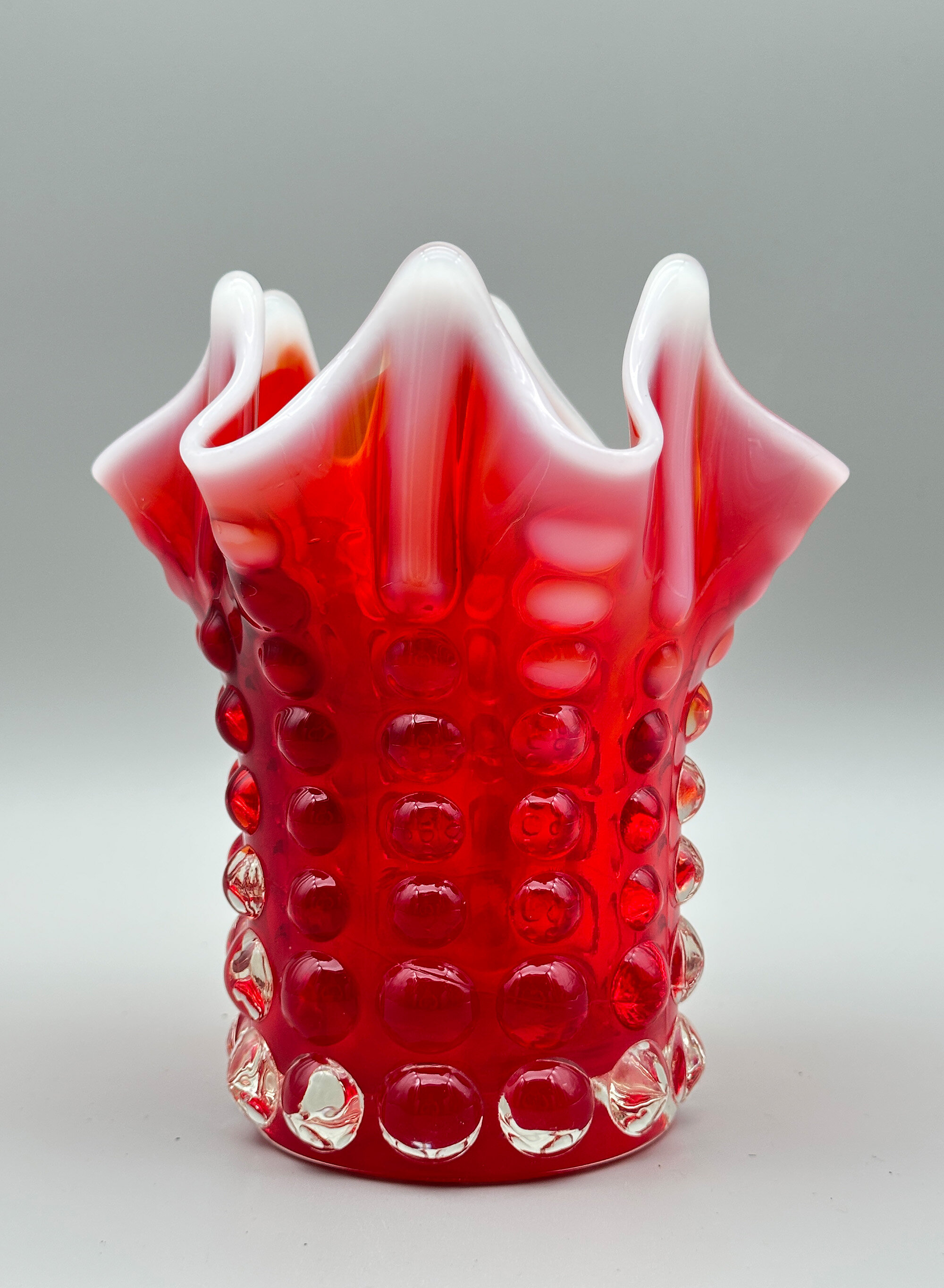Cranberry hobnail glass Vase, Fenton Art Glass USA, mid C20th