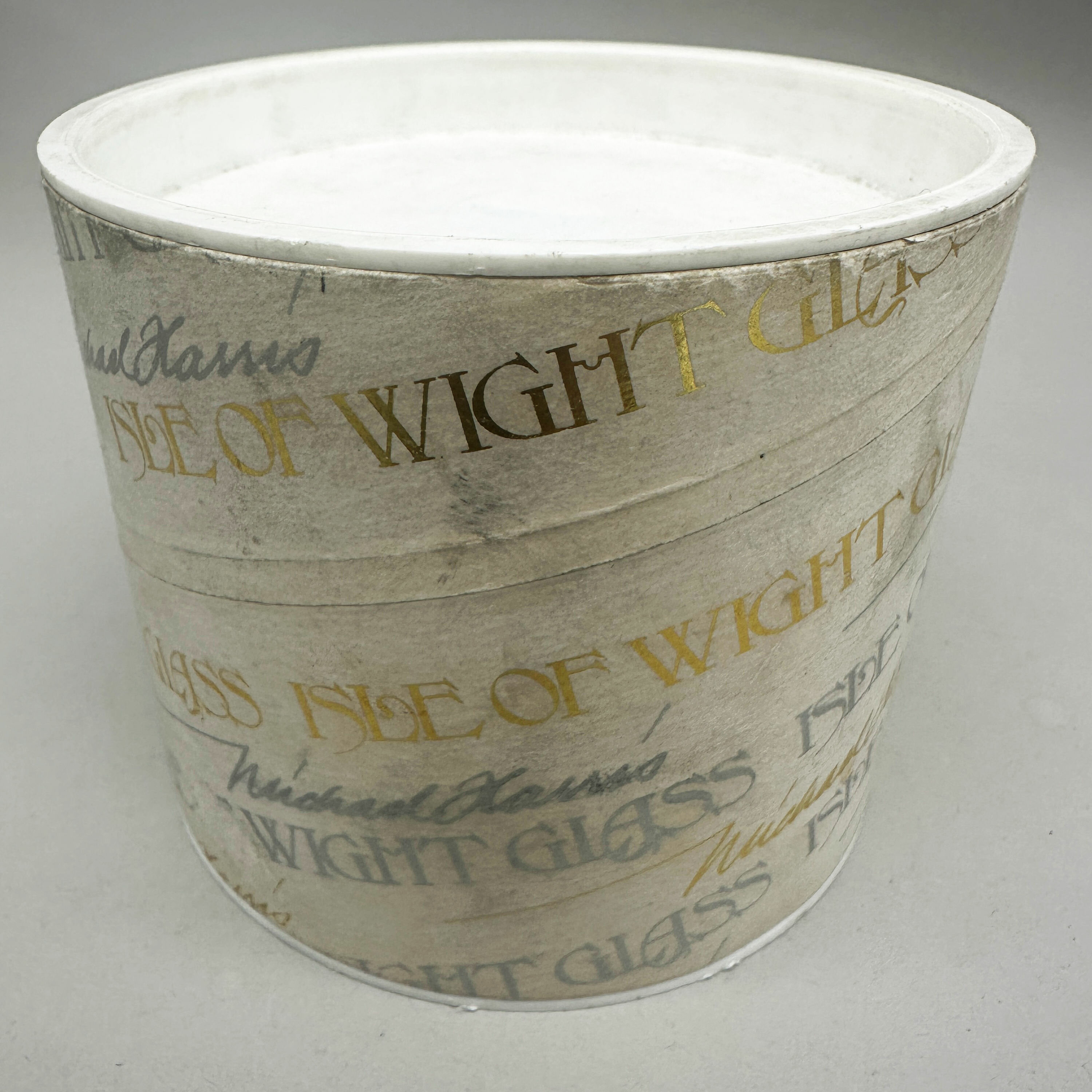 The pieces made by Isle of Wight Glass are a continuation of the innovative designs and skiful craftsmanship seen in Mdina pieces and this bottle is a fine example of their work. It also comes with a matching box but this may not be the original one (other examples are taller) since the stopper has to be loose packed separately. This hardly detracts, though, from a striking and individual piece in an attractive and rarely found colour wave.